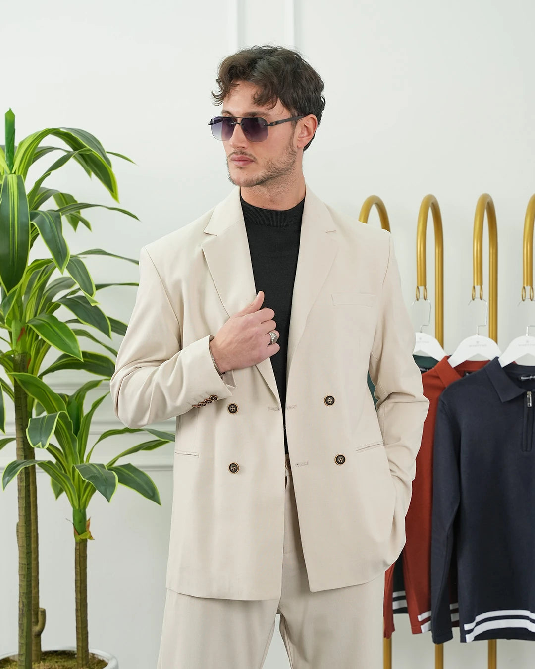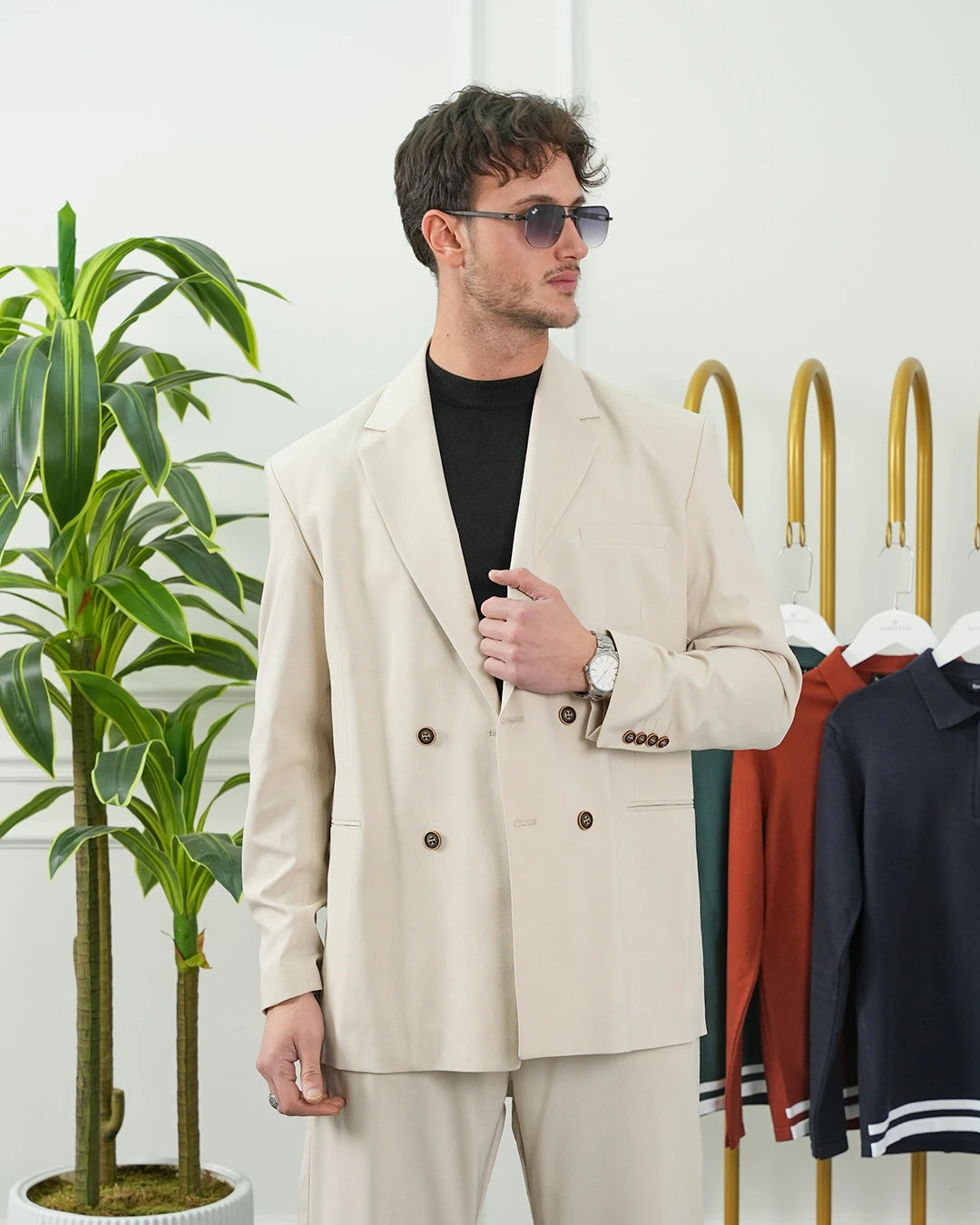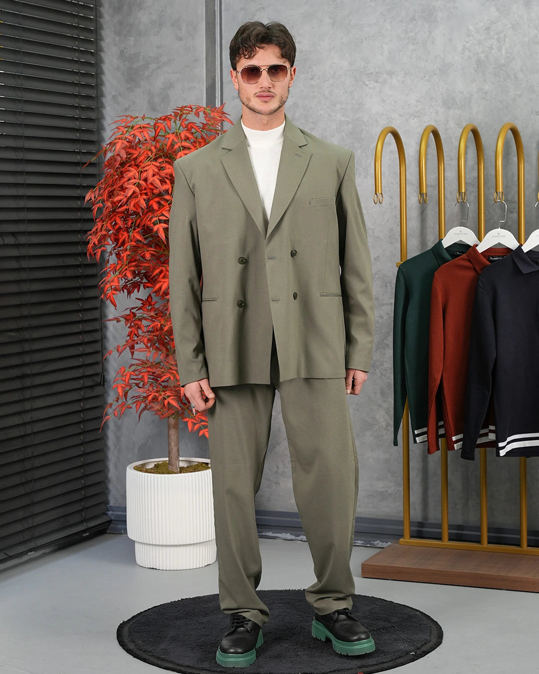 4 Düğme Detaylı Oversize Kesim Baggy Kruvaze Takım Elbise