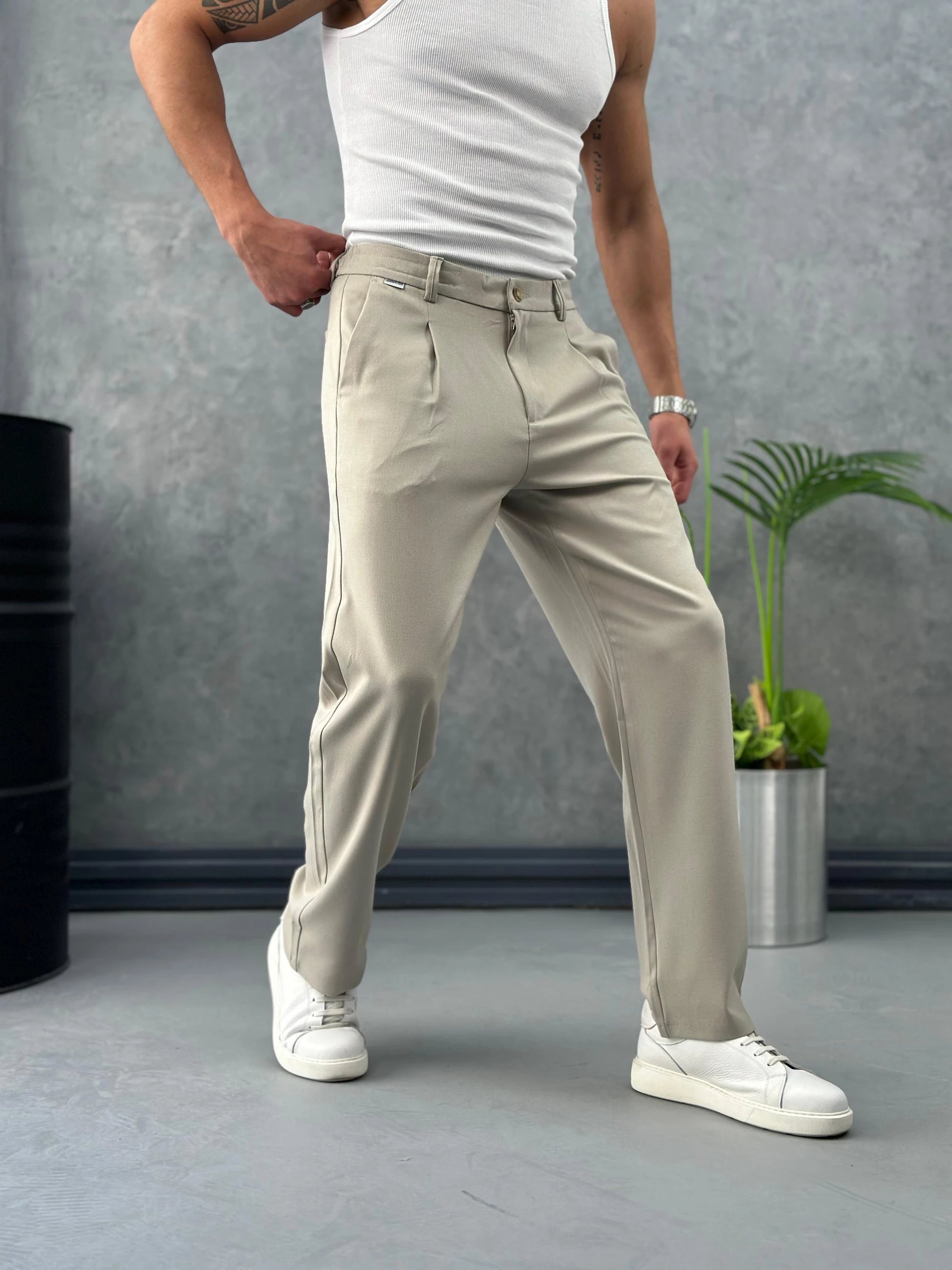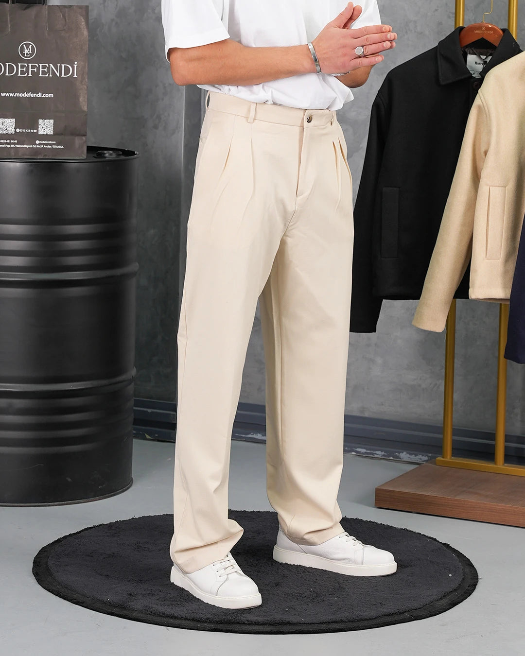Baggy Kalıp Pile Detaylı Kumaş Pantolon