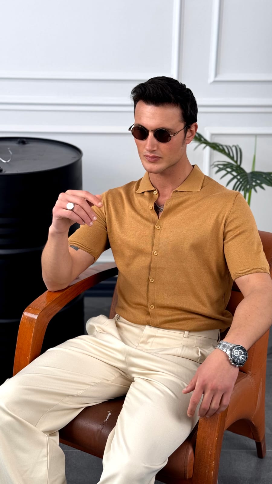 Slim Fit Pamuk Örme Polo Yaka Kısa Kollu Gömlek