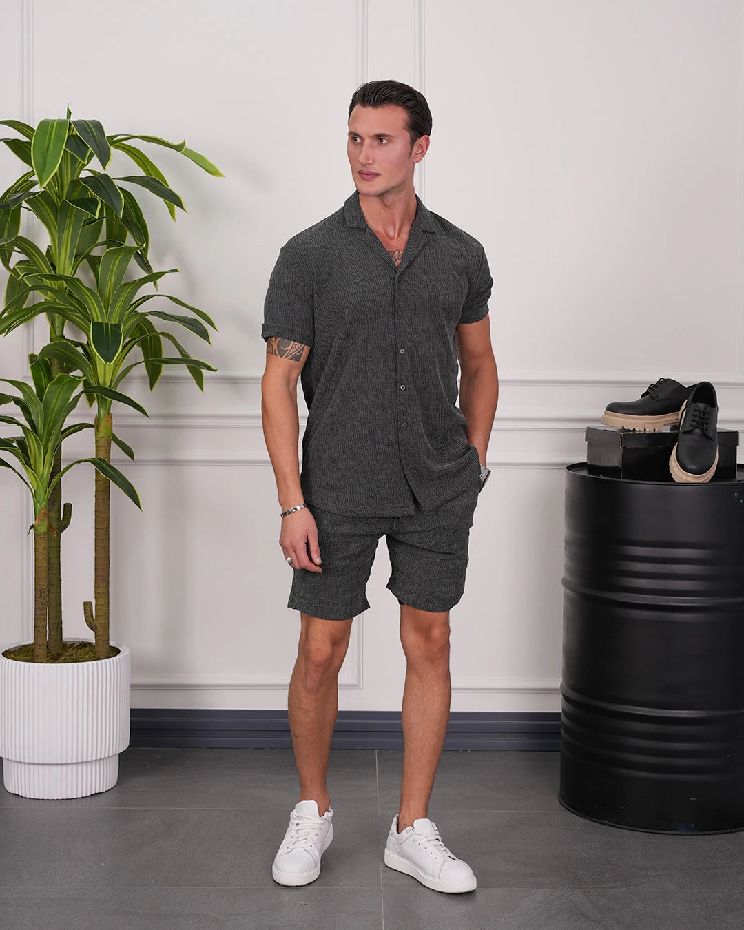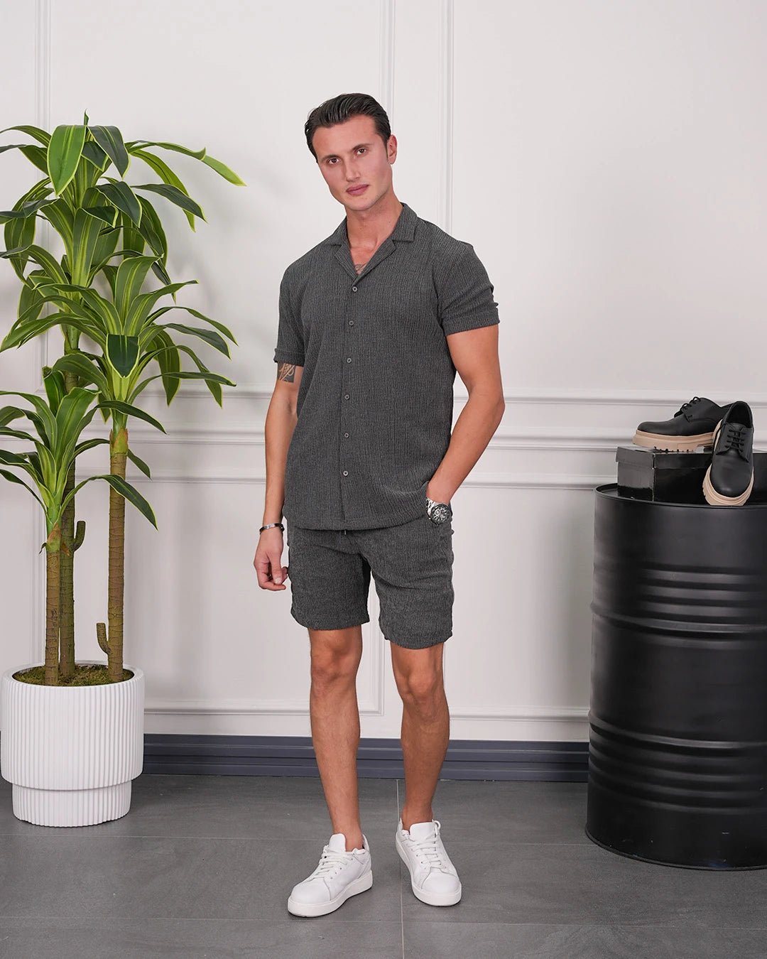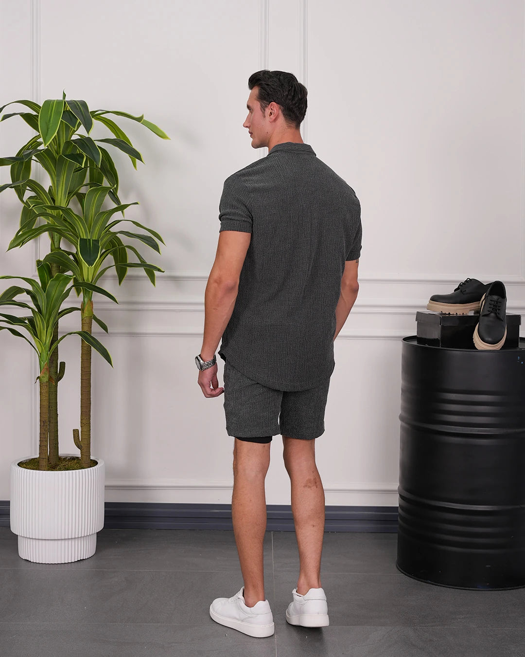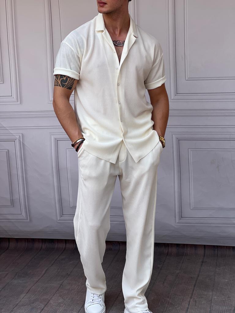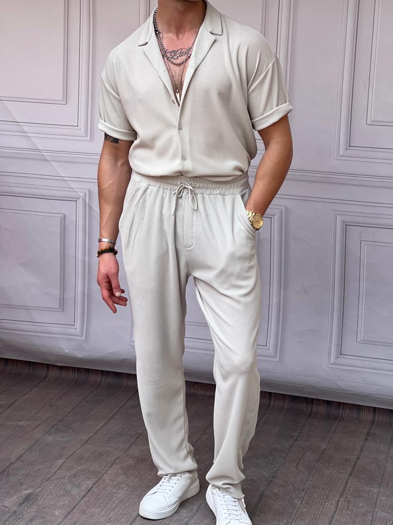Krinkıl Kumaş Pamuklu Gömlek + Şort Takım