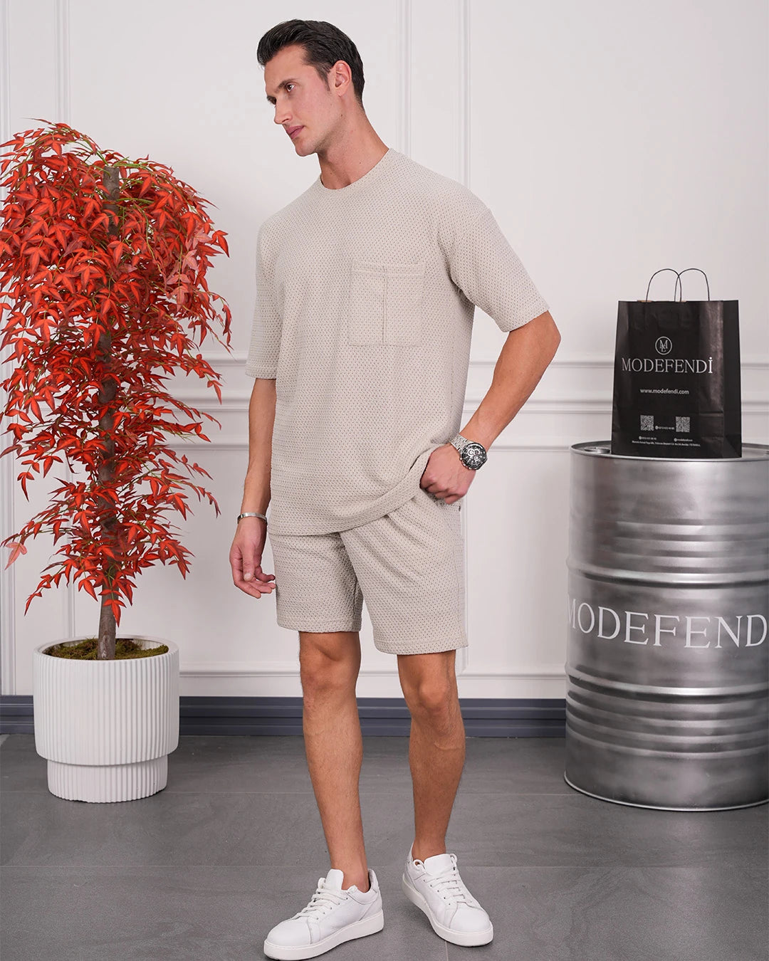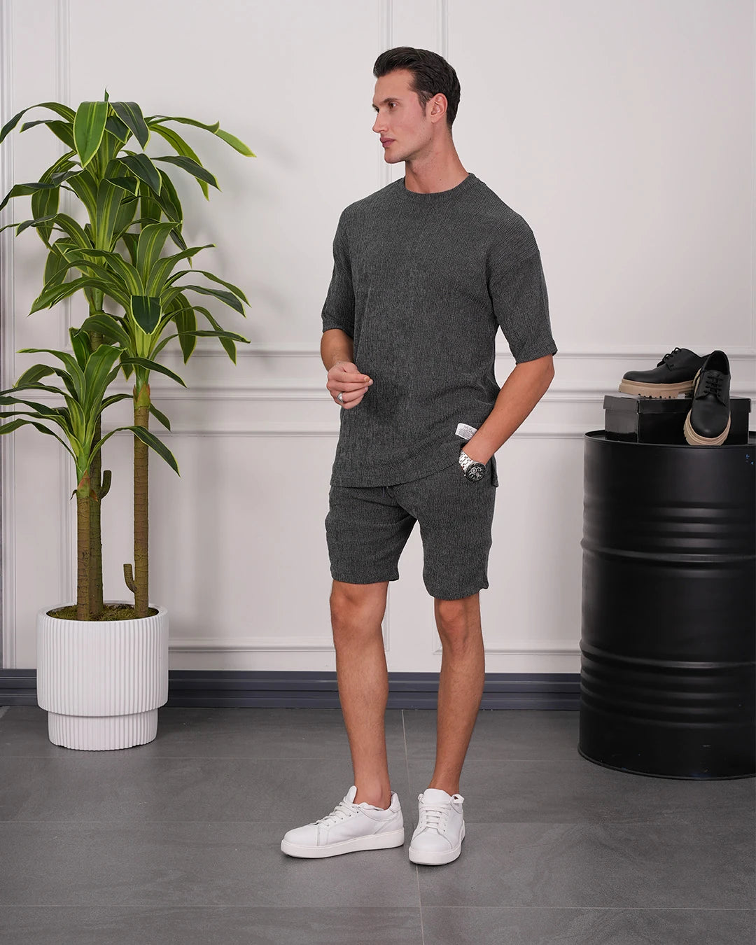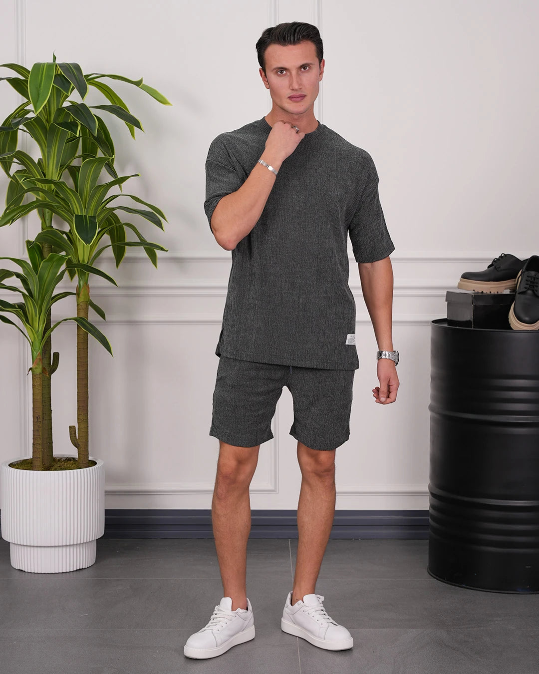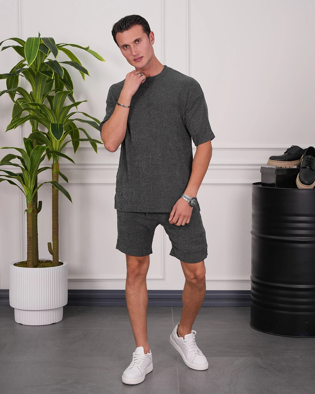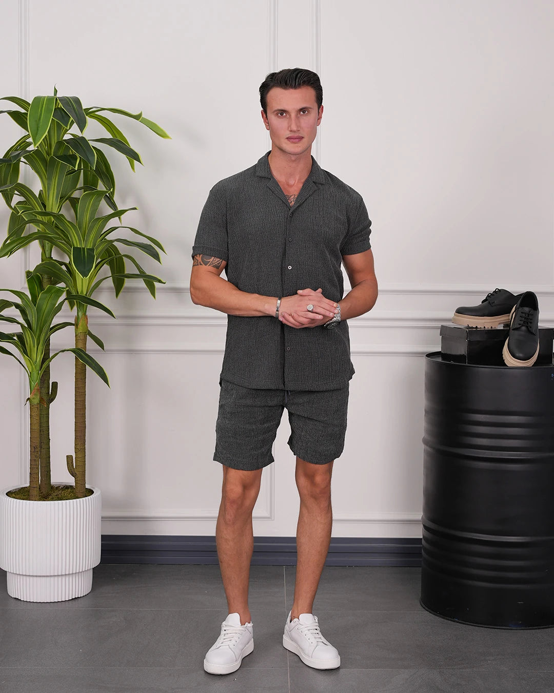 Krinkıl Kumaş Pamuklu Gömlek + Şort Takım