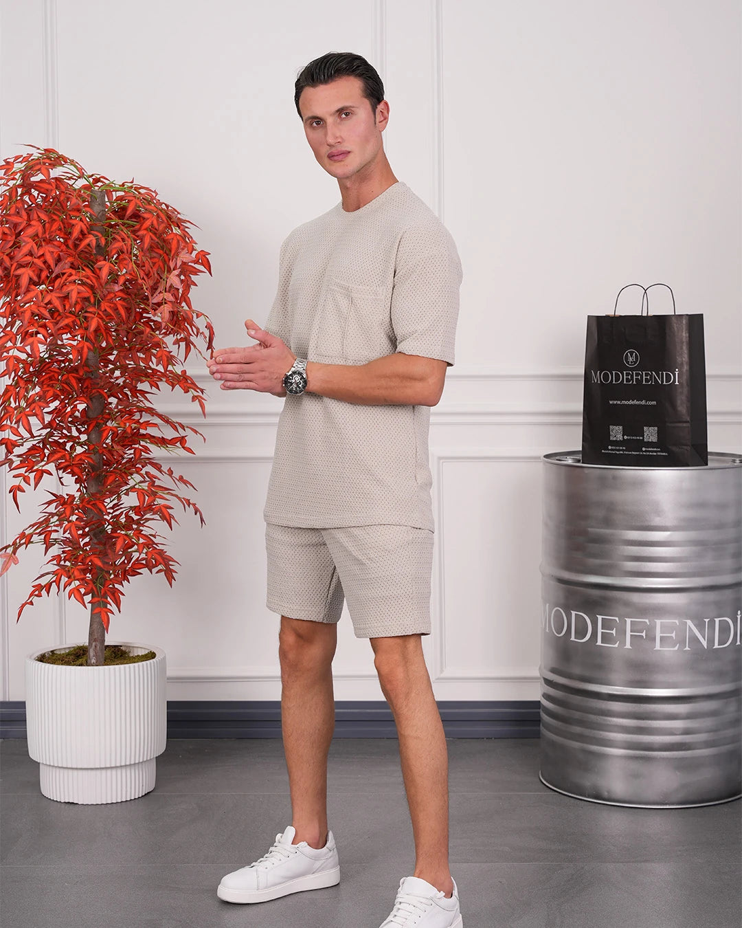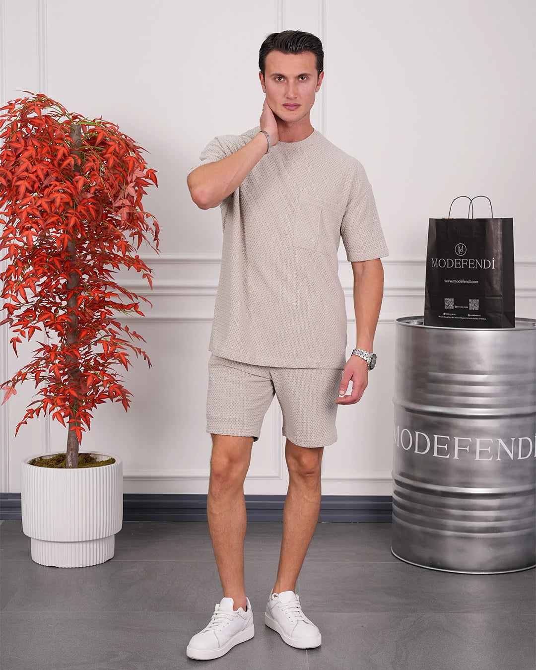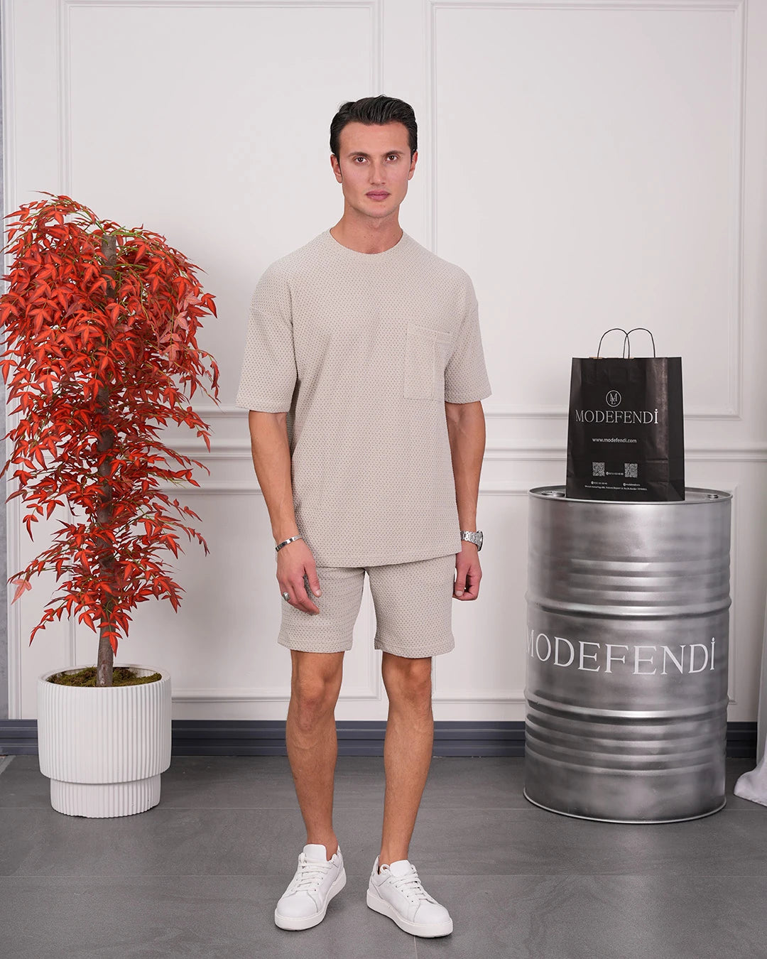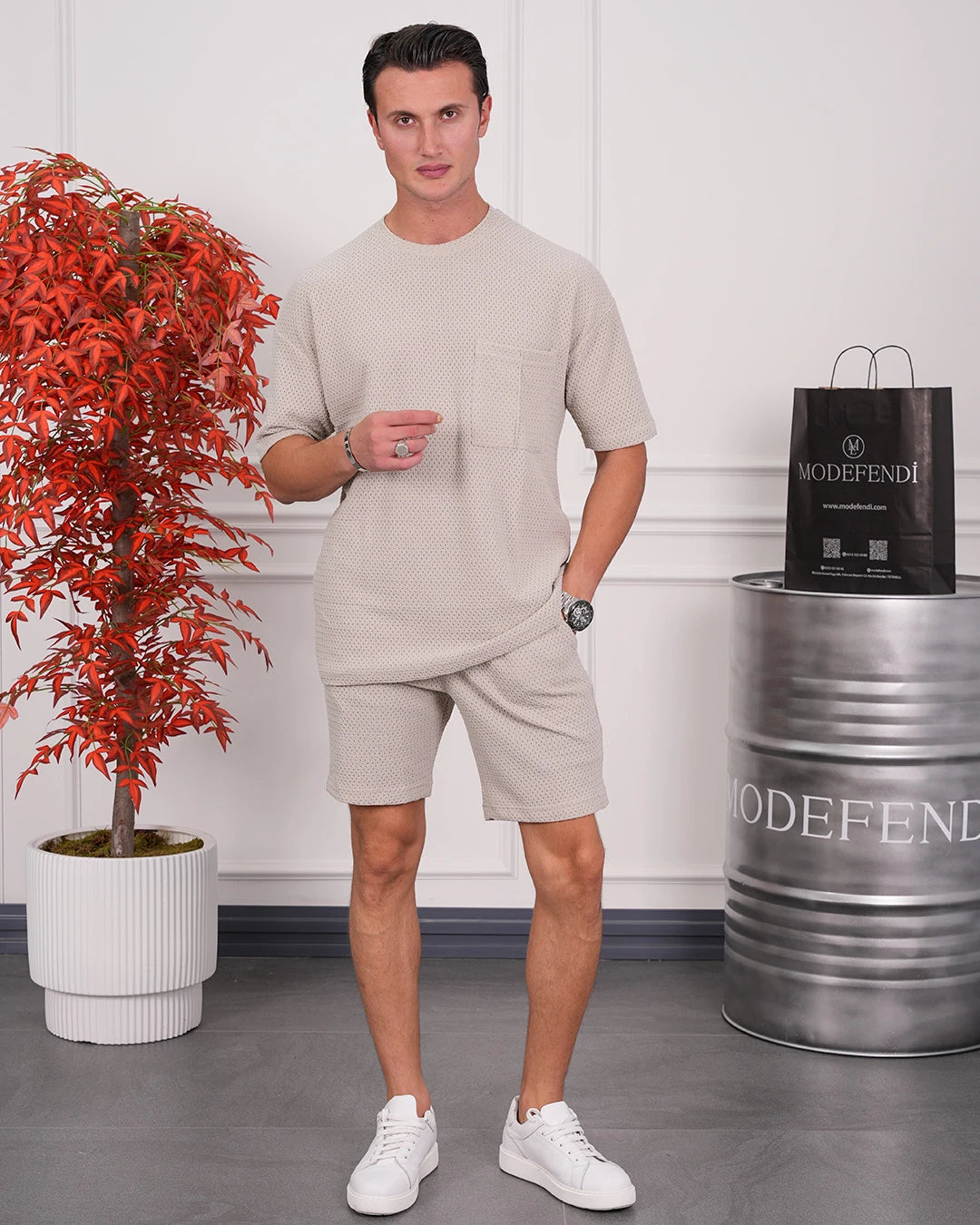 Krinkıl Kumaş Pamuklu Gömlek + Şort Takım
