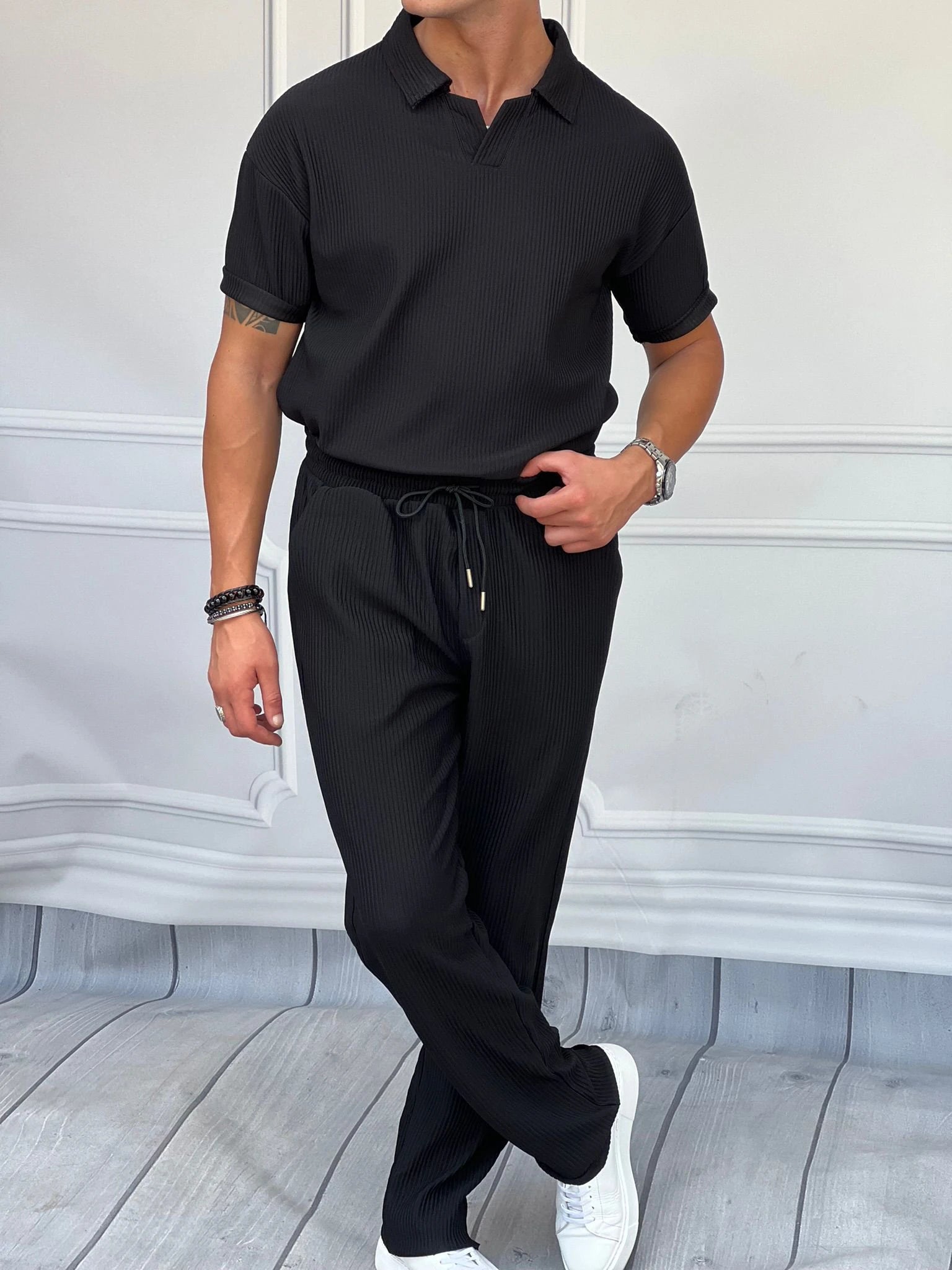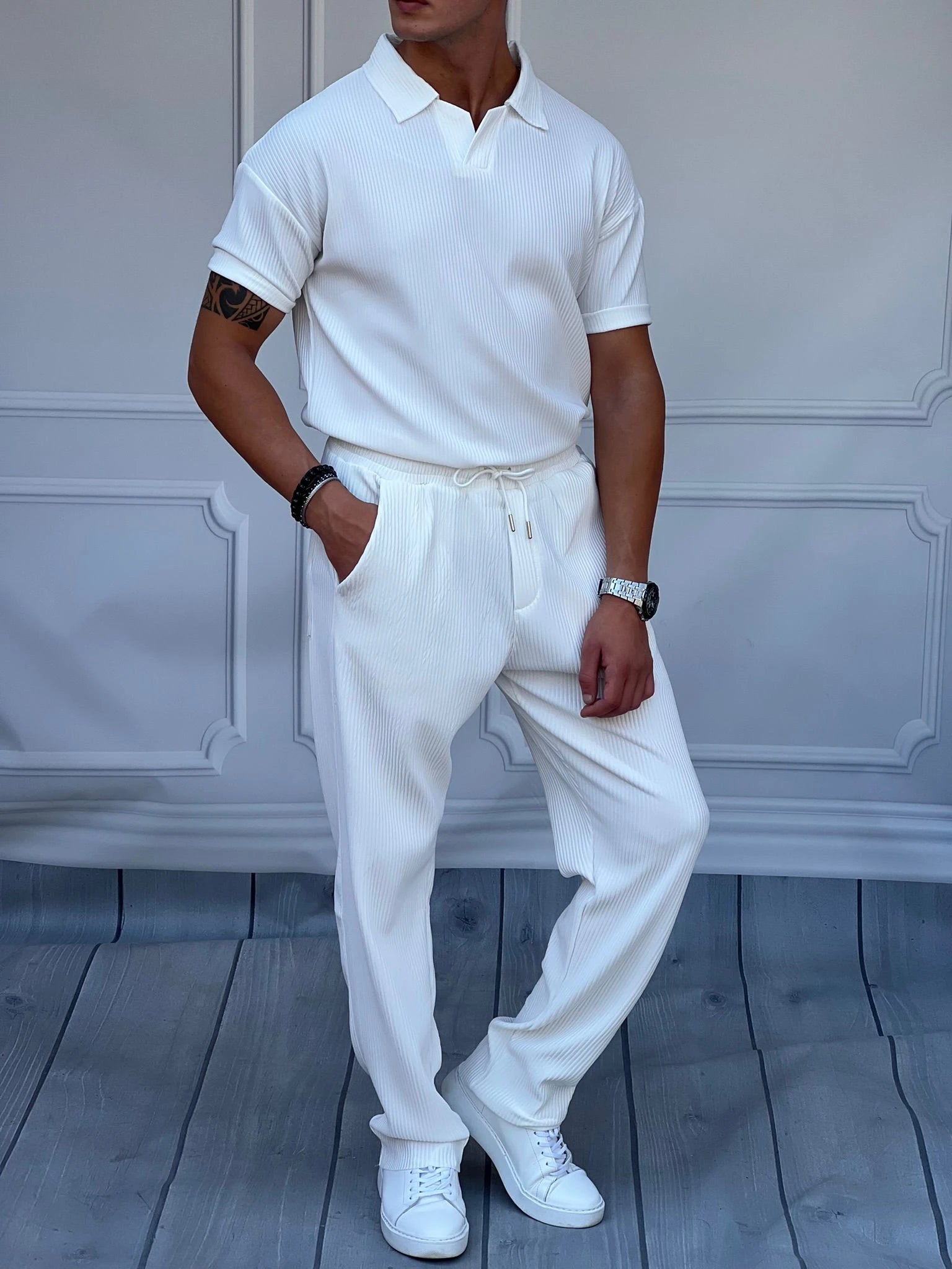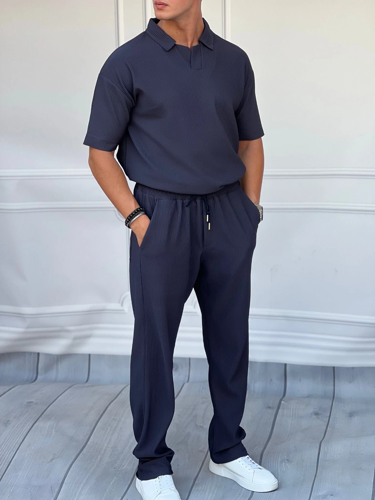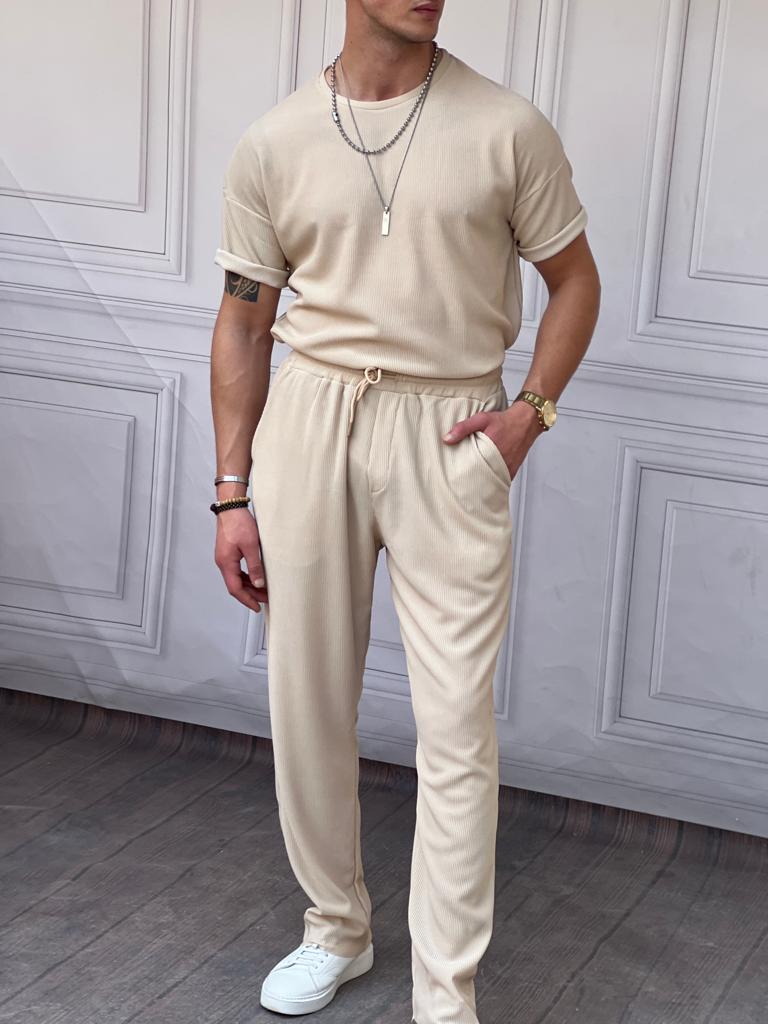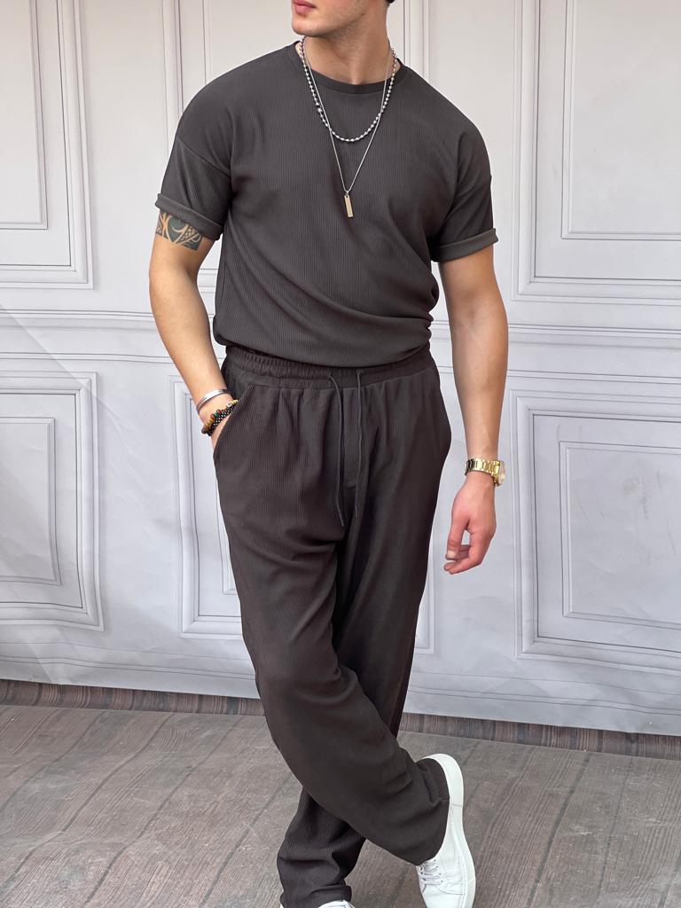 Kalın Fitil Desenli Tshırt'lü Alt Üst Takım