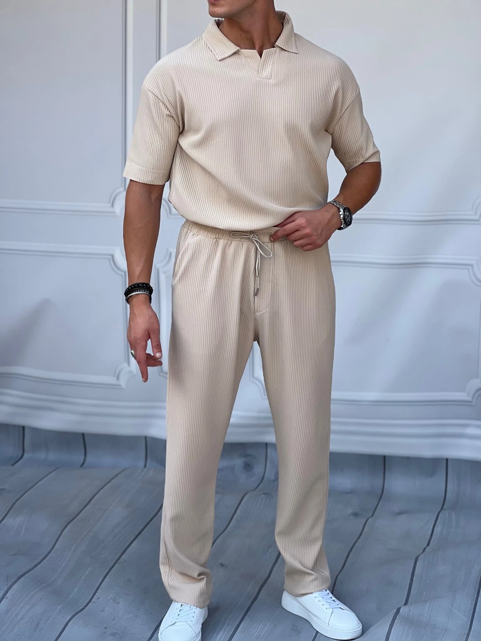 İnce Fitil Desenli Oversize Alt Üst Takım