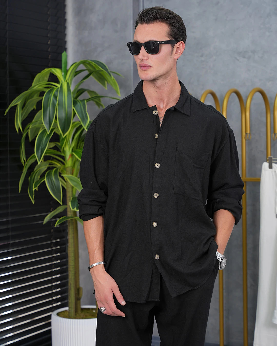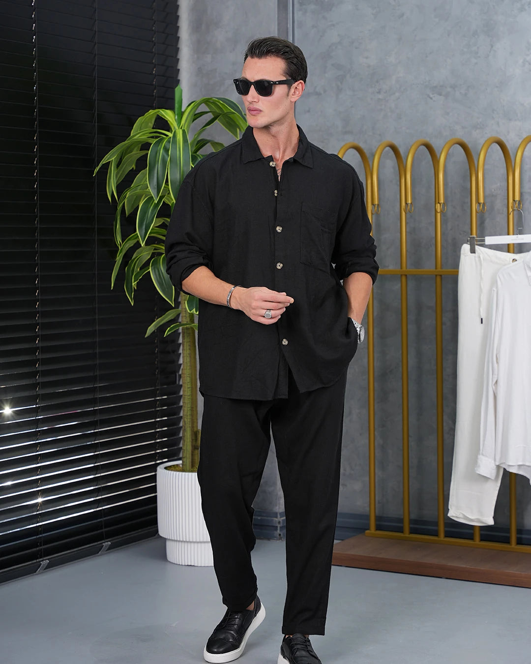 %100 Ham Keten Tam Oversize Kesim Alt -Üst Takım