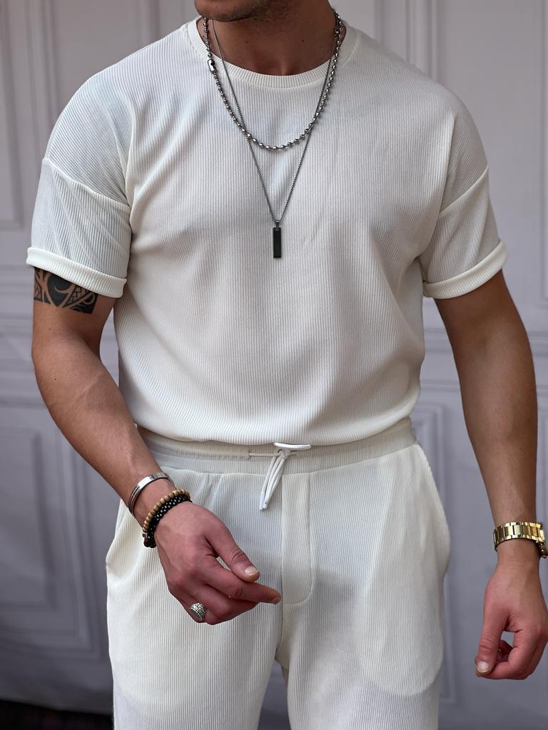 Kesik Yaka Kalın Fitil Tshirt'lü Alt Üst Takım