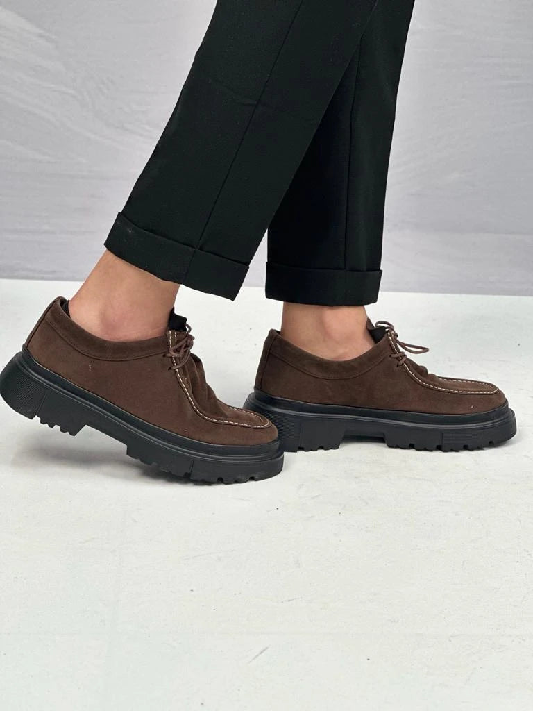 Bağcıklı Kalın Tabanlı Süet Ayakkabı