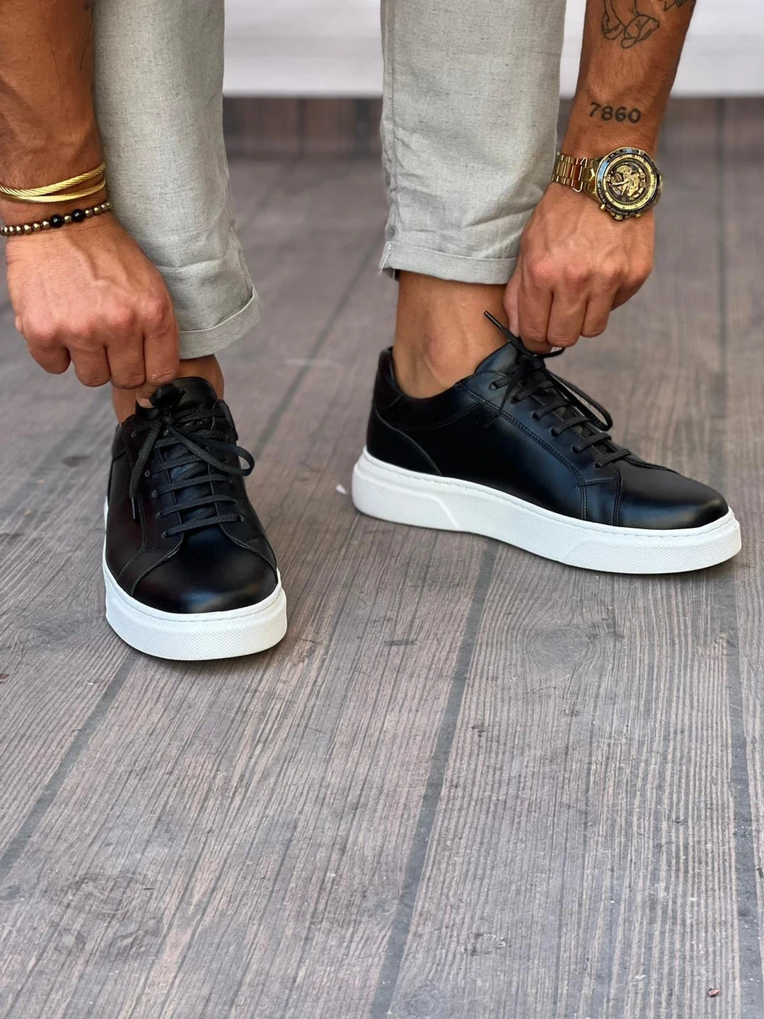 Desenli Deri Spor Ayakkabı