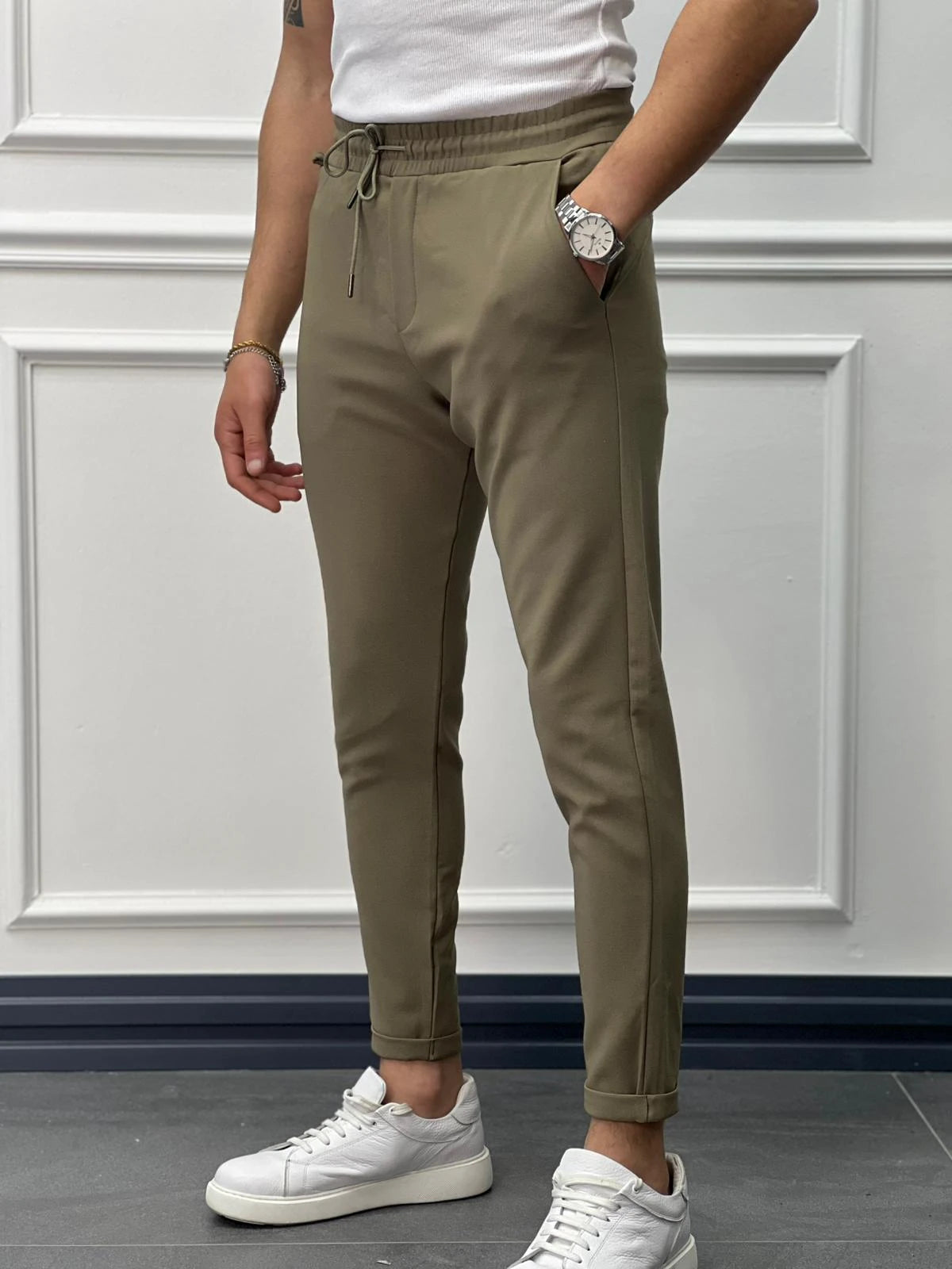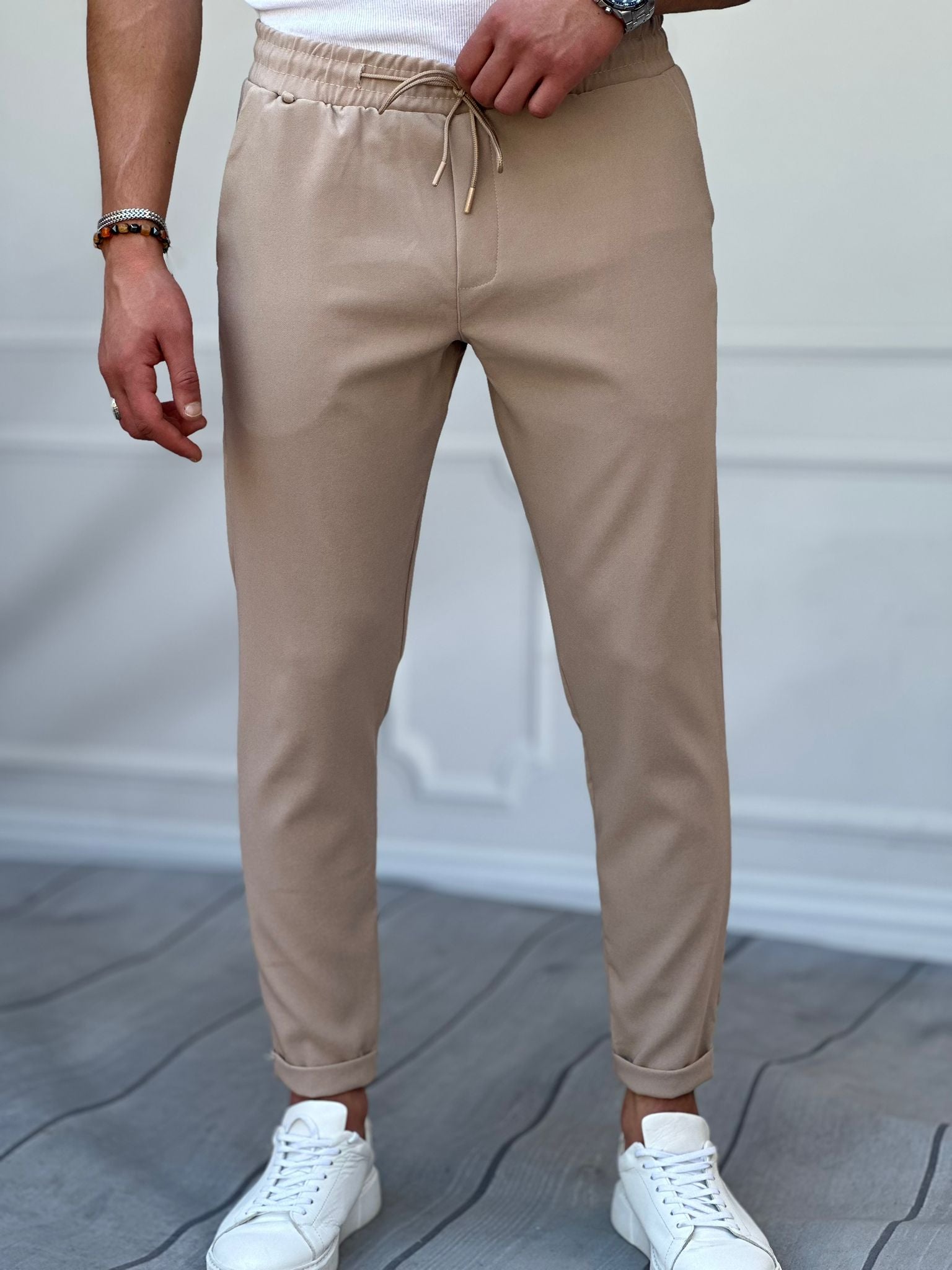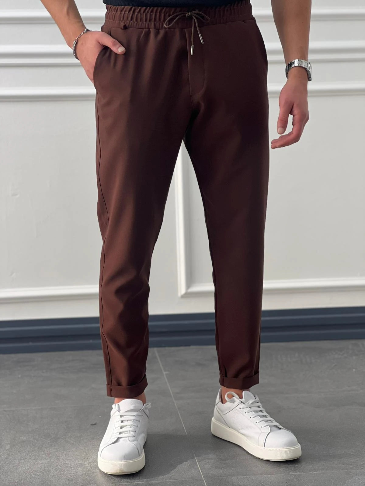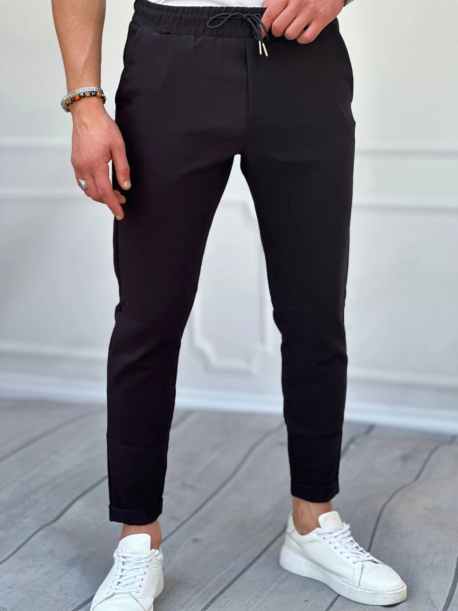 Double Paça Slimfit Kesim Full Likralı İp Detaylı Düz Jogger Pantolon