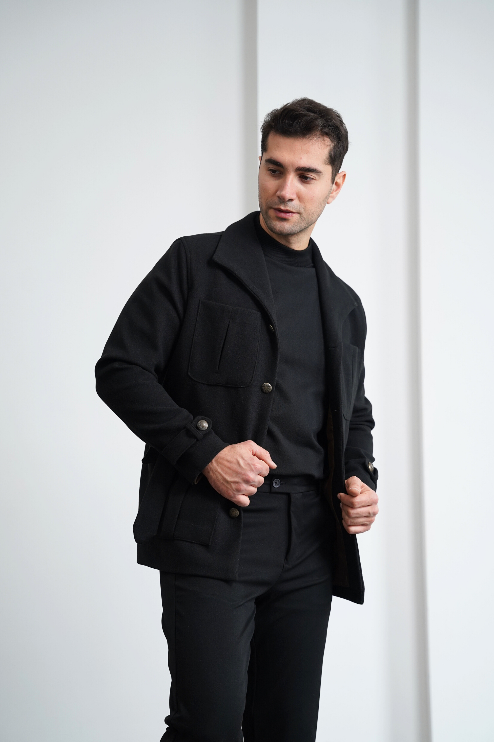Orta Slim Fit Düğme Detaylı Kaşmir Kaban