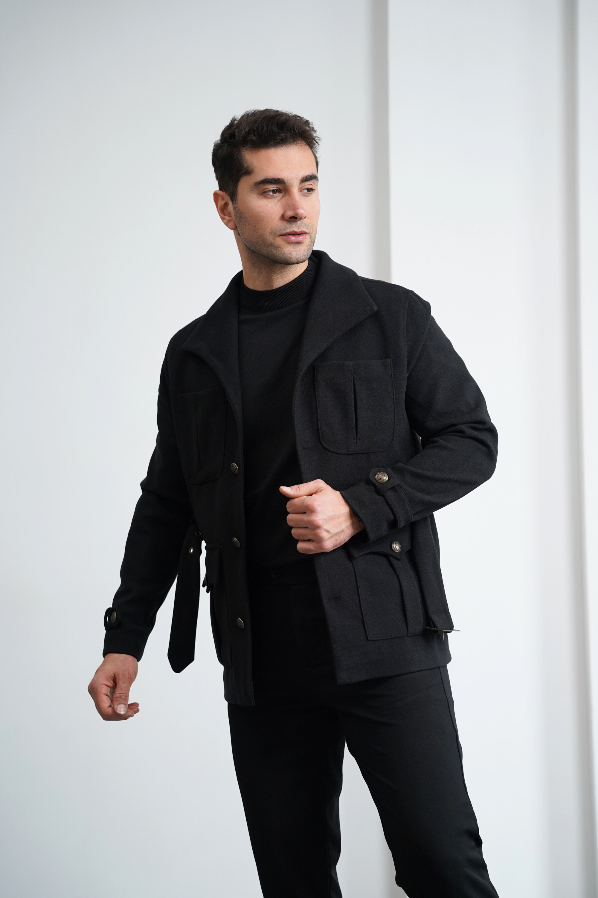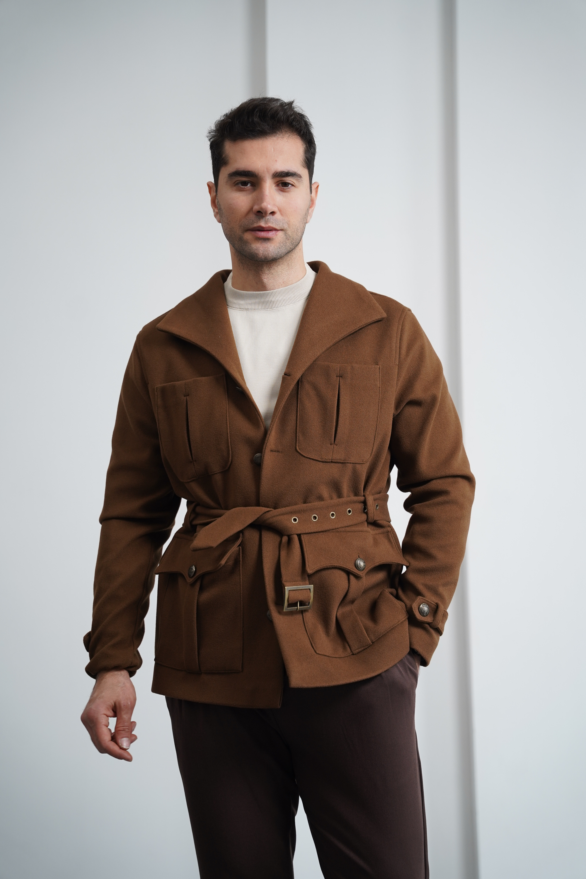 Kemer Detaylı Kaşe Kaban