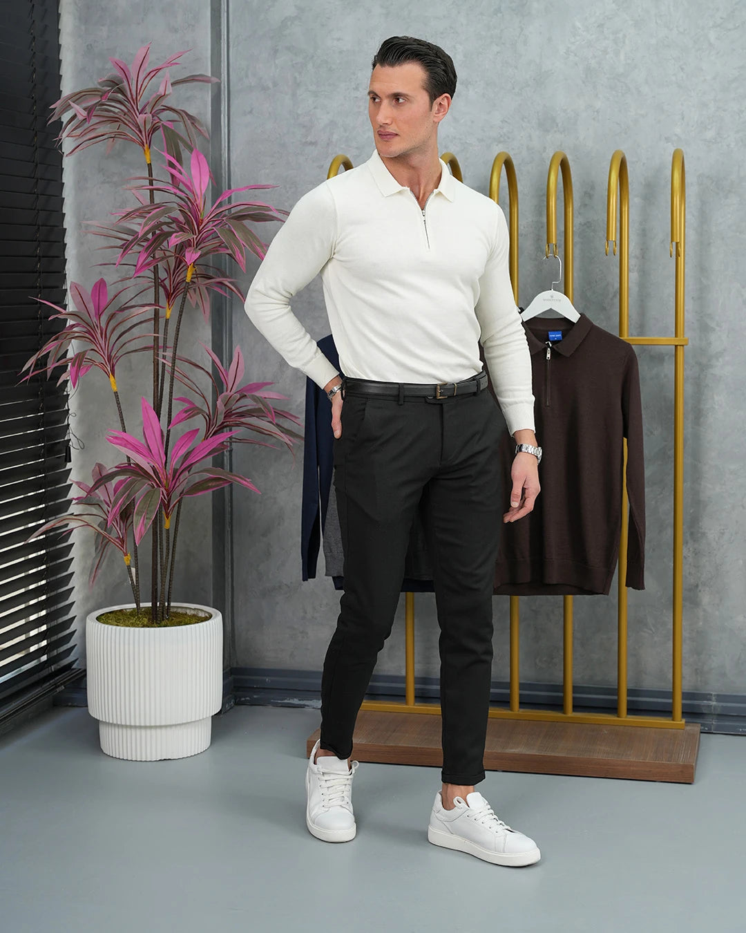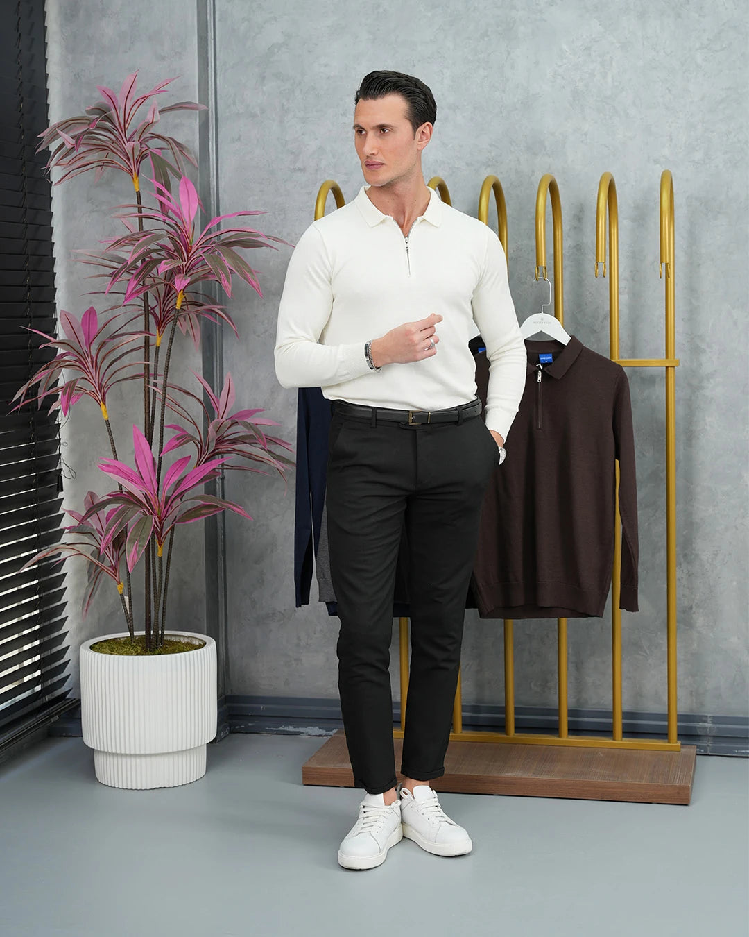 Pamuk Likra Slim Fit Yarım Fermuarlı Kazak