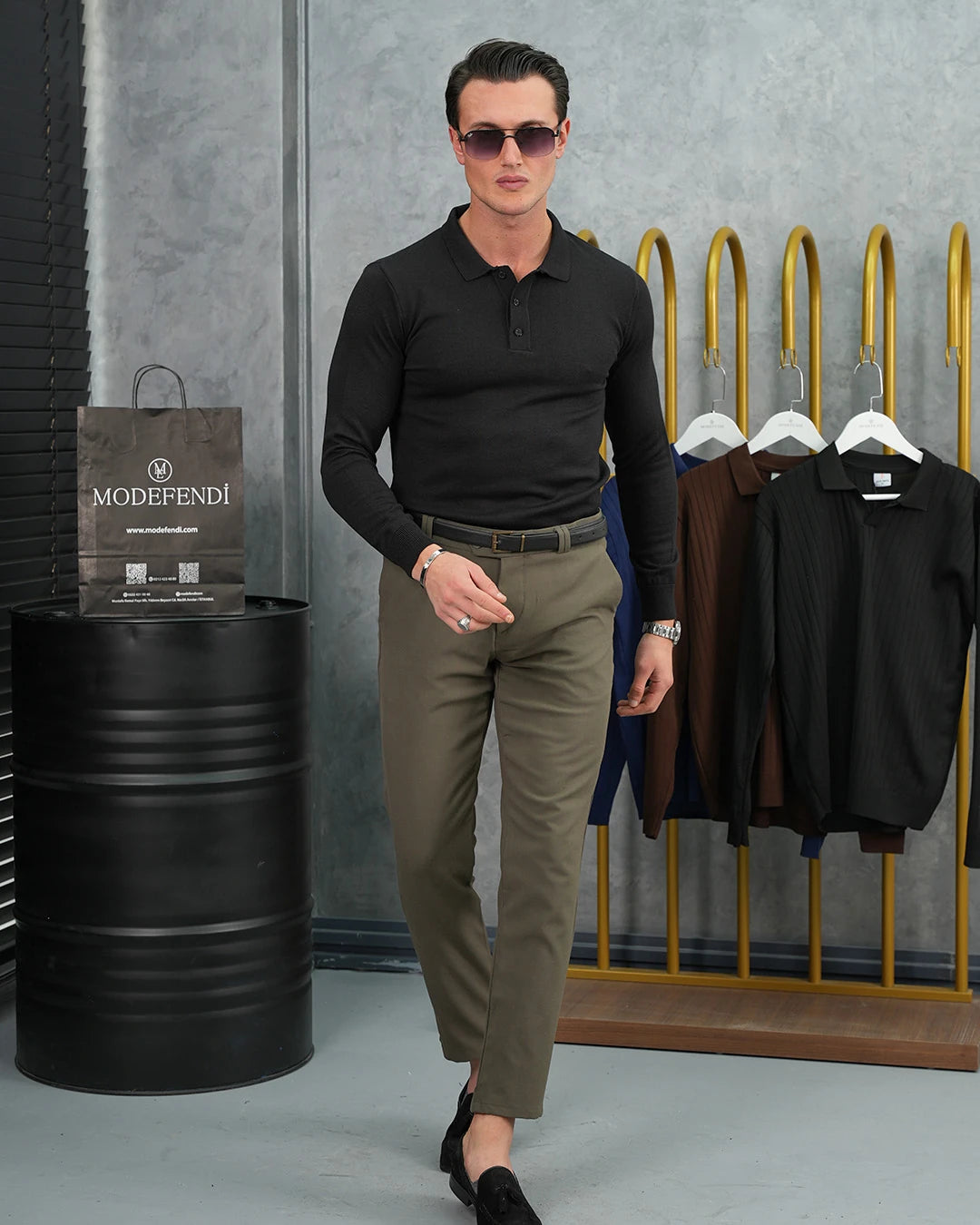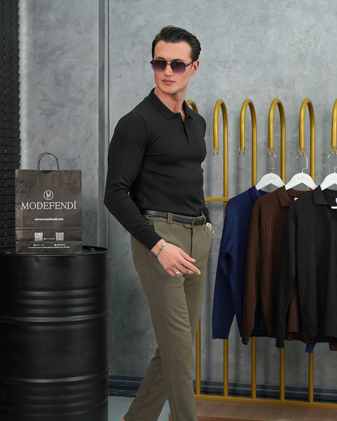 Pamuk Likra Slim Fit Polo Yaka Triko Kazak
