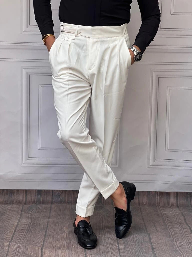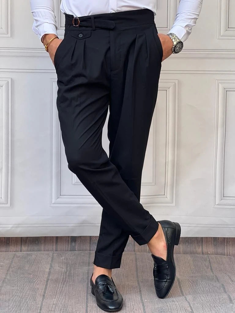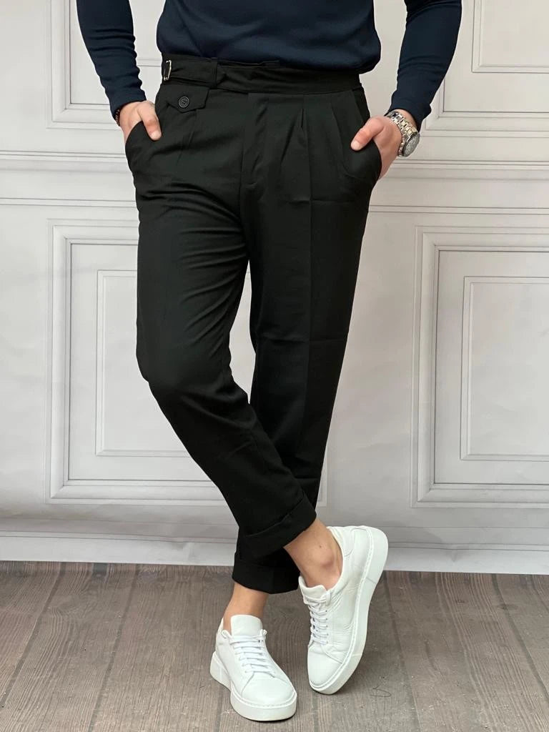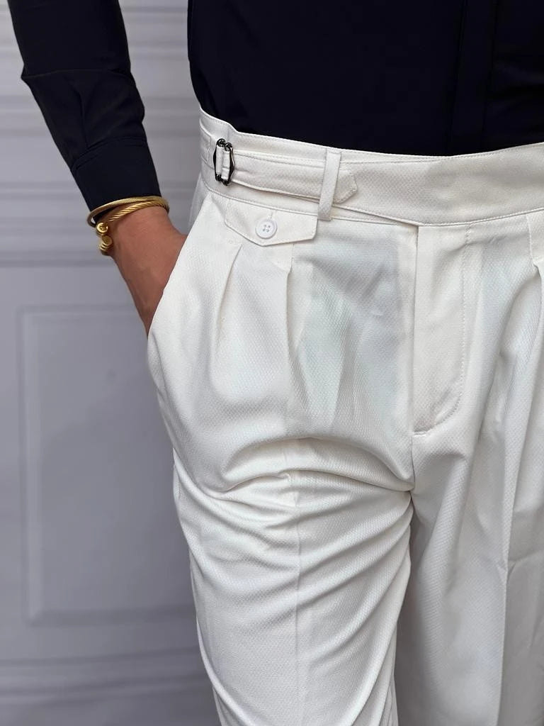 Özel Tasarım Toka ve Düğme Detaylı Pileli Pantolon