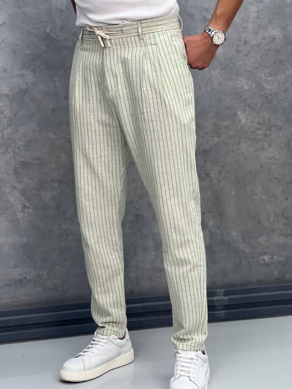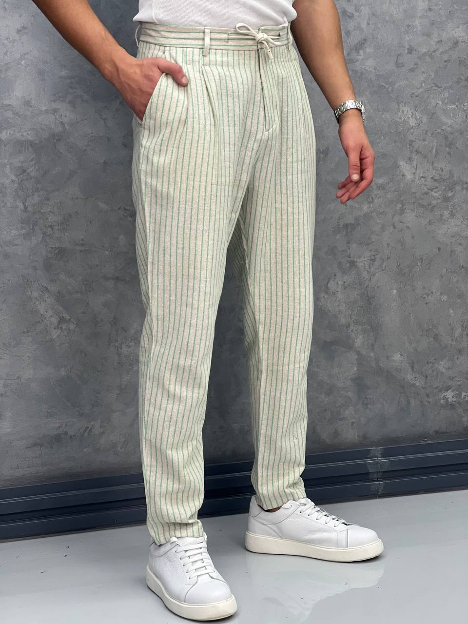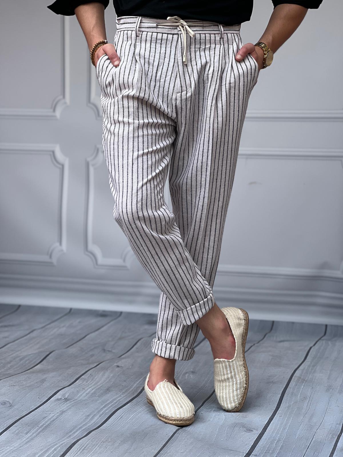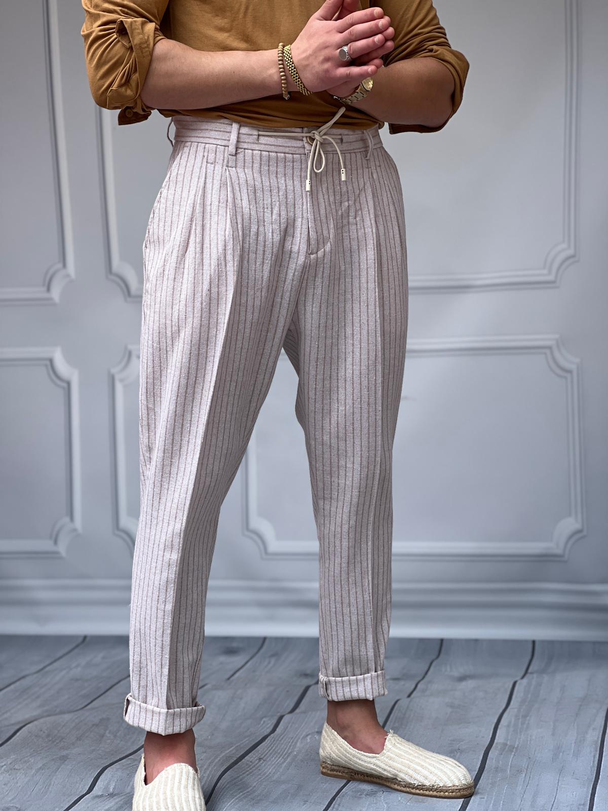 Linen Kumaş Çizgi Detaylı Pantolon