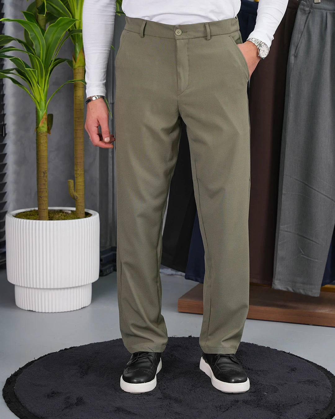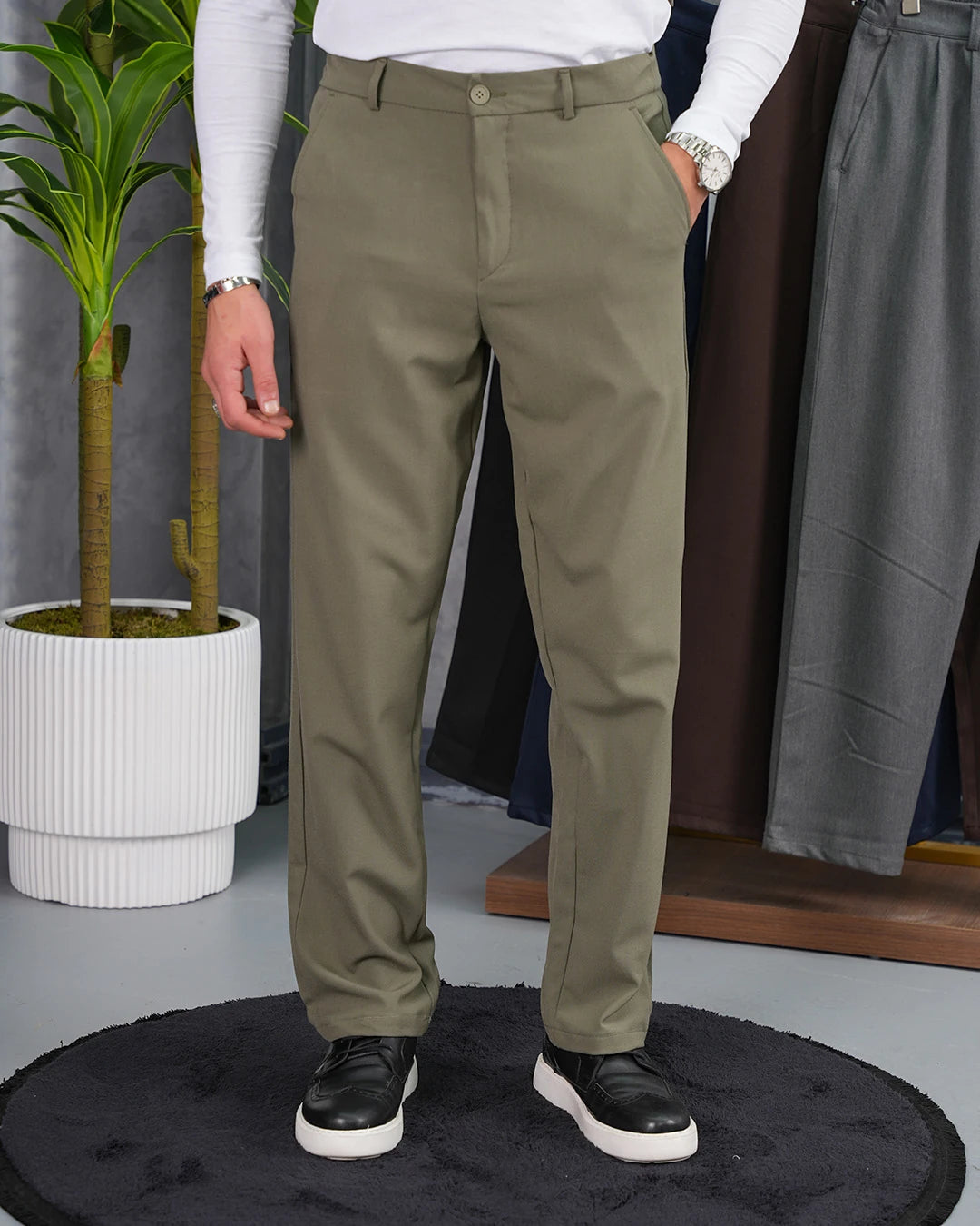 Özel Üretim %100 Gofre Kumaş Modern Fit Kumaş Pantolon