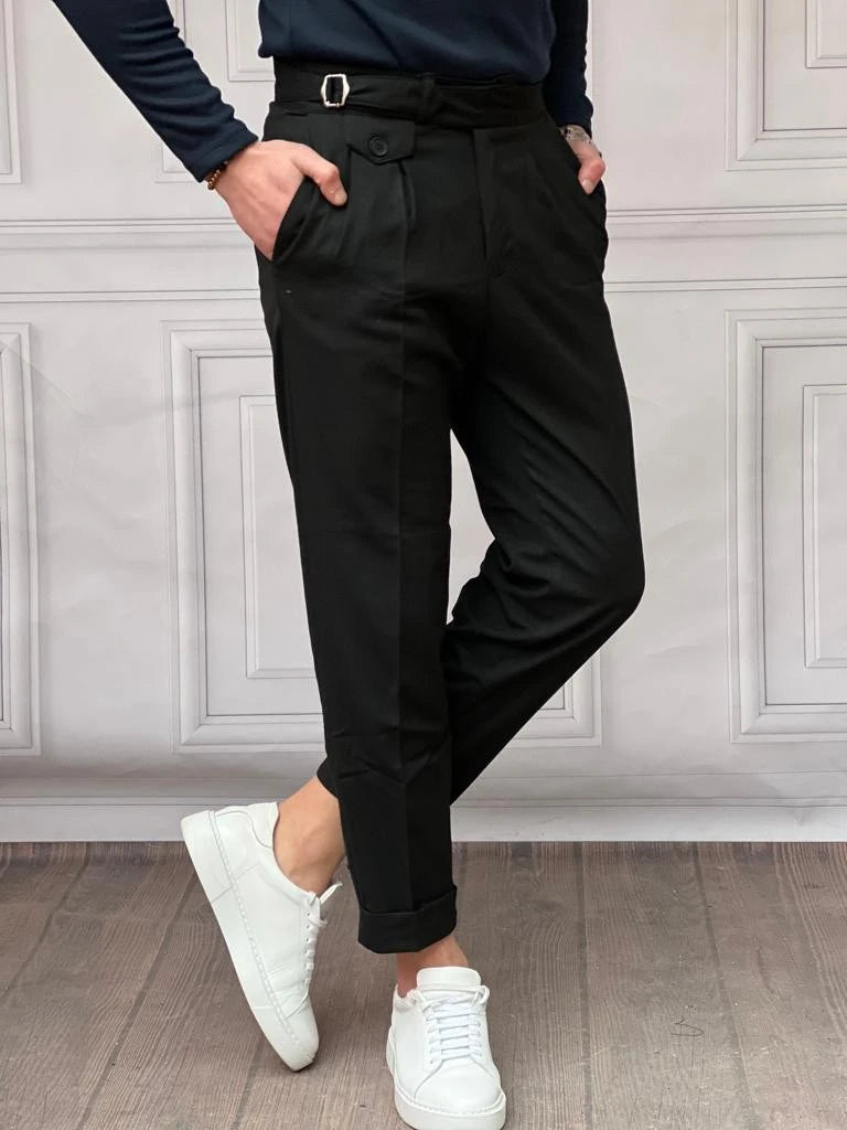 İki Düğme ve Toka Detaylı Yüksek Kalite Kumaş Pantolon