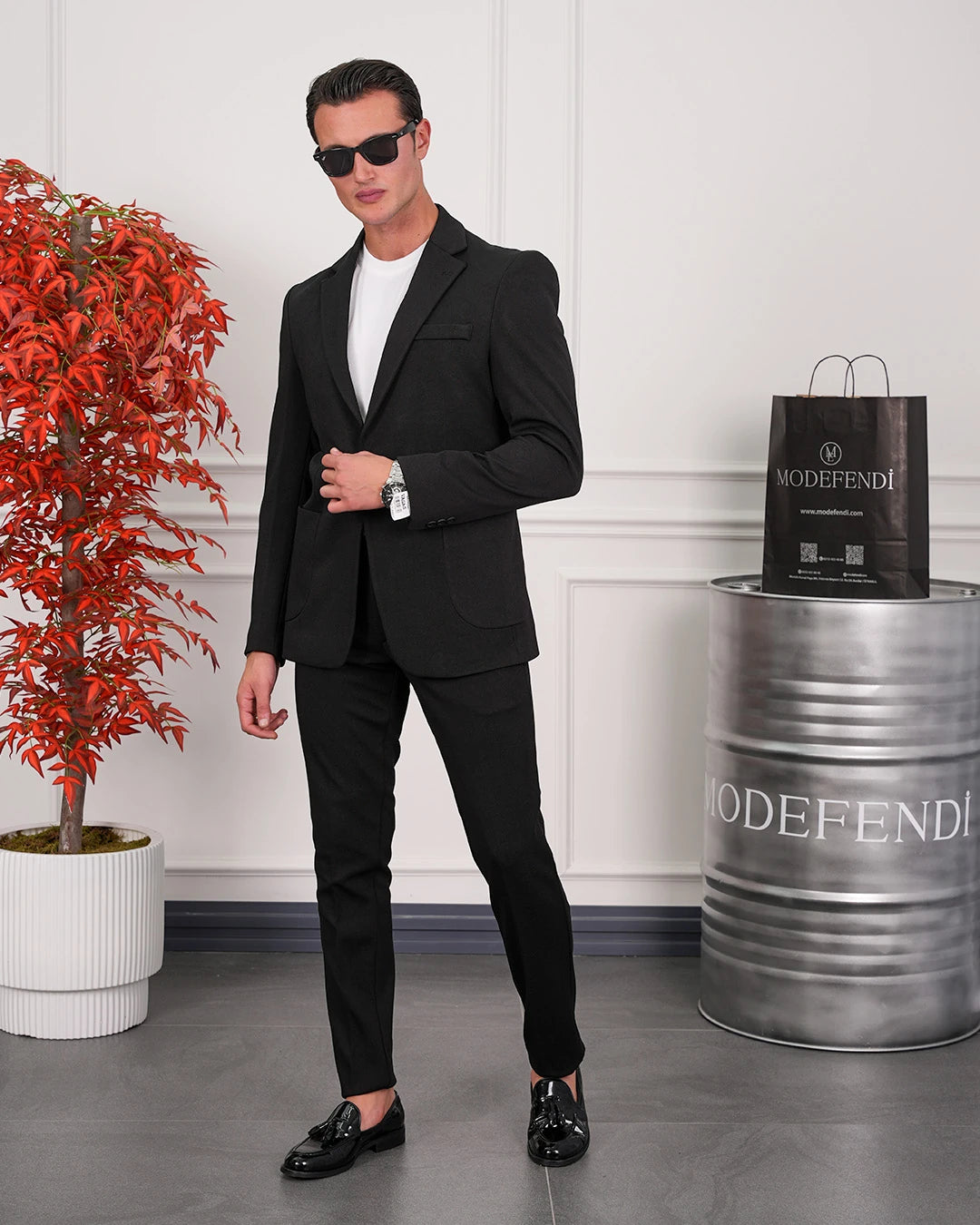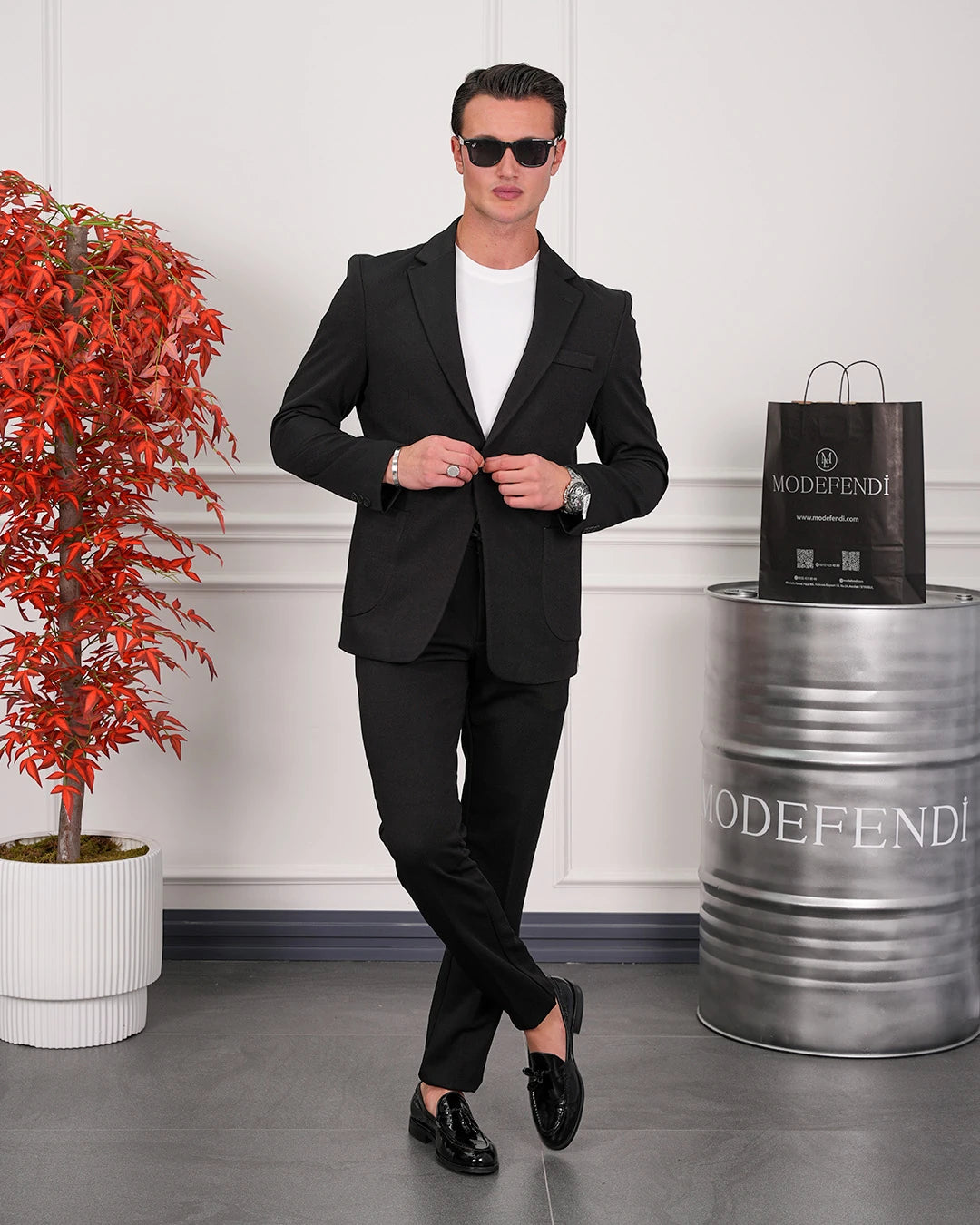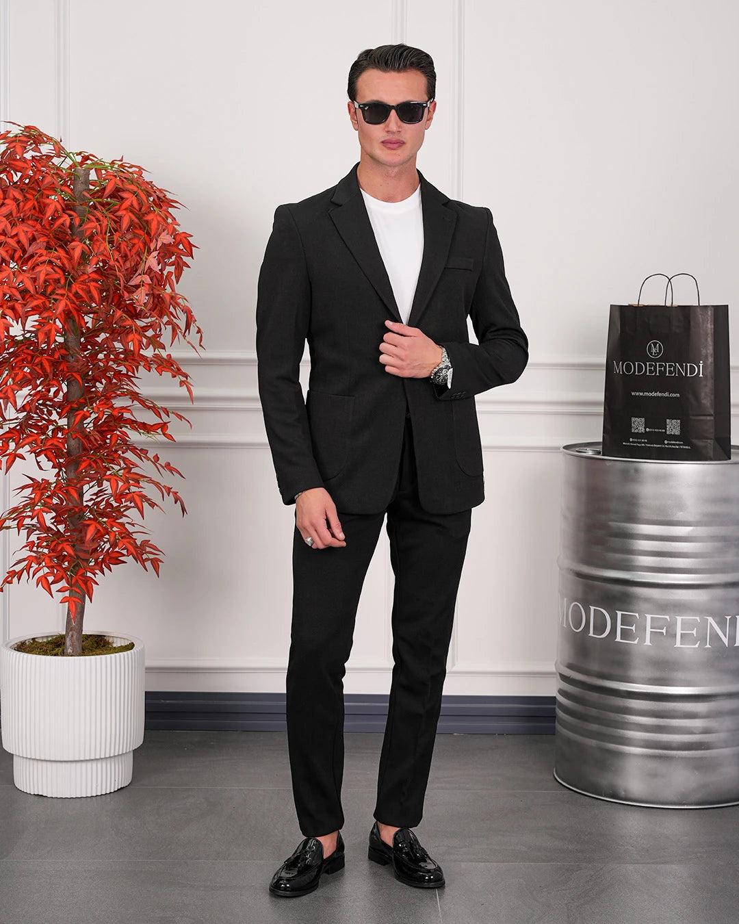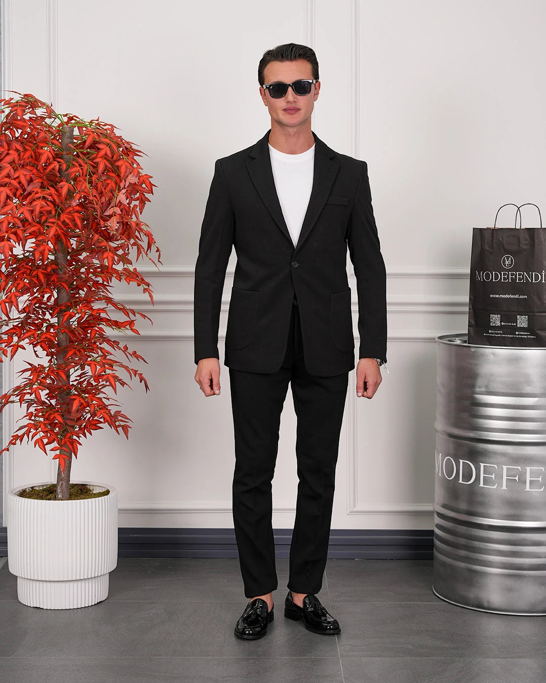 Petek Örme Pamuk Likra İtalyan Kesim Slimfit Ceket Pantolon Takım Elbise