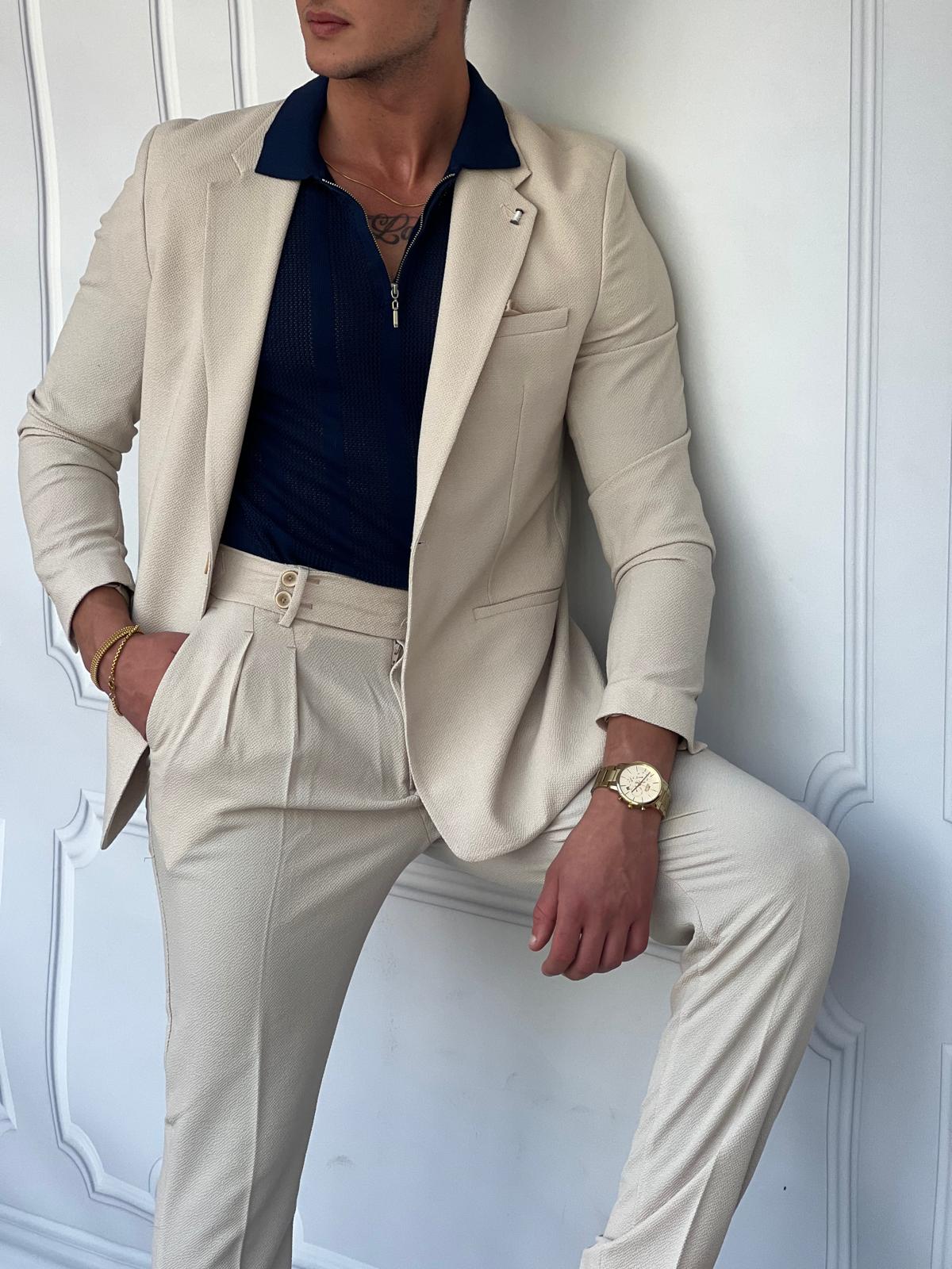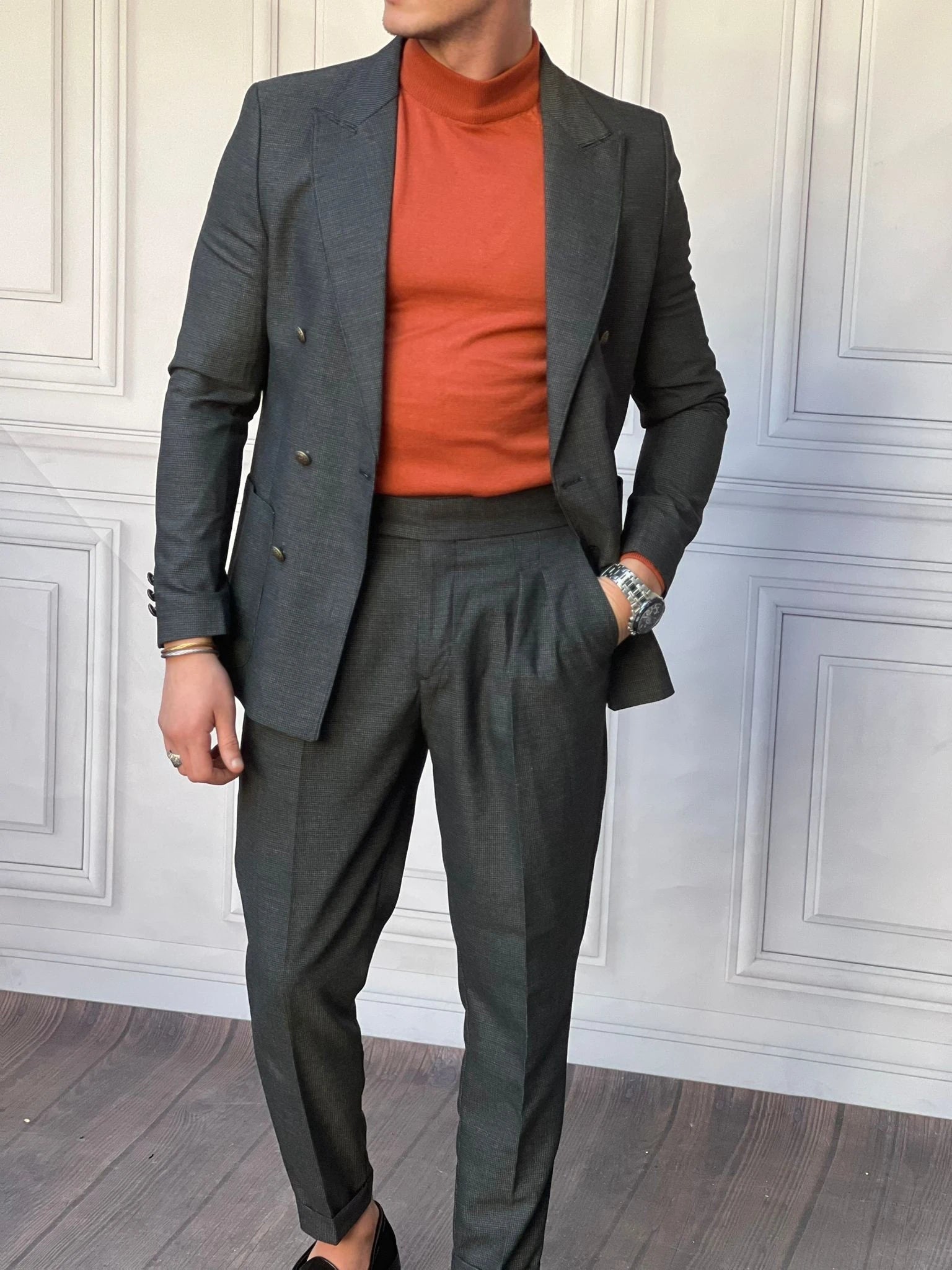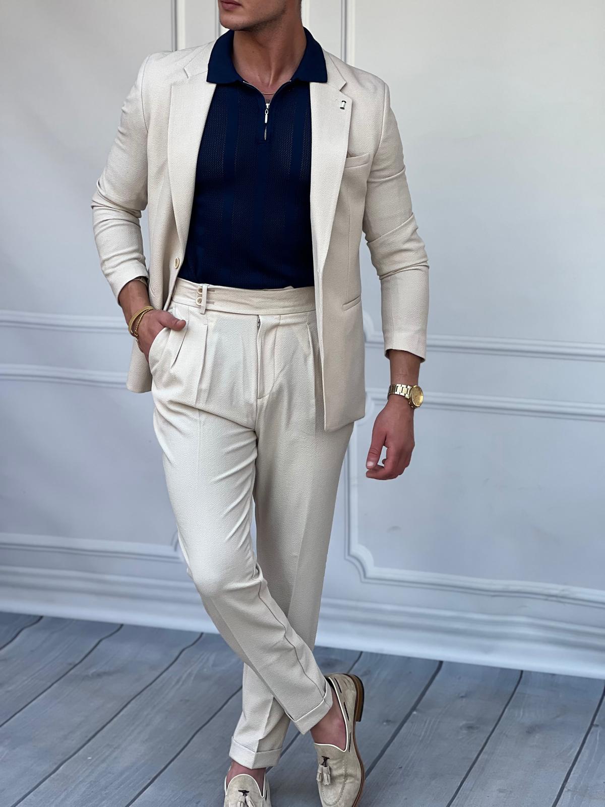 Özel Seri %100 Gofre Kumaş İtalyan Kesim Pileli Modern Fit Takım Elbise