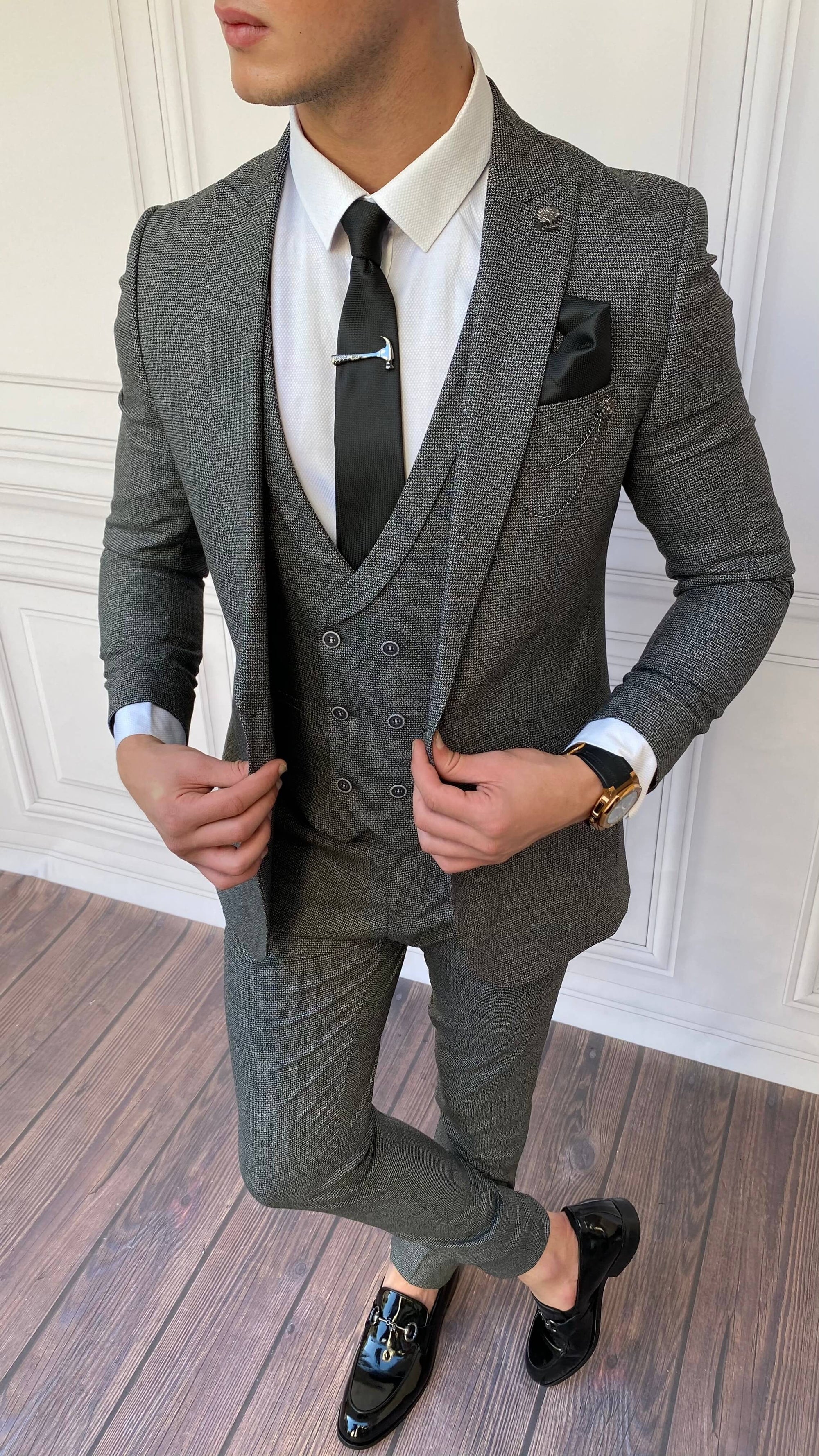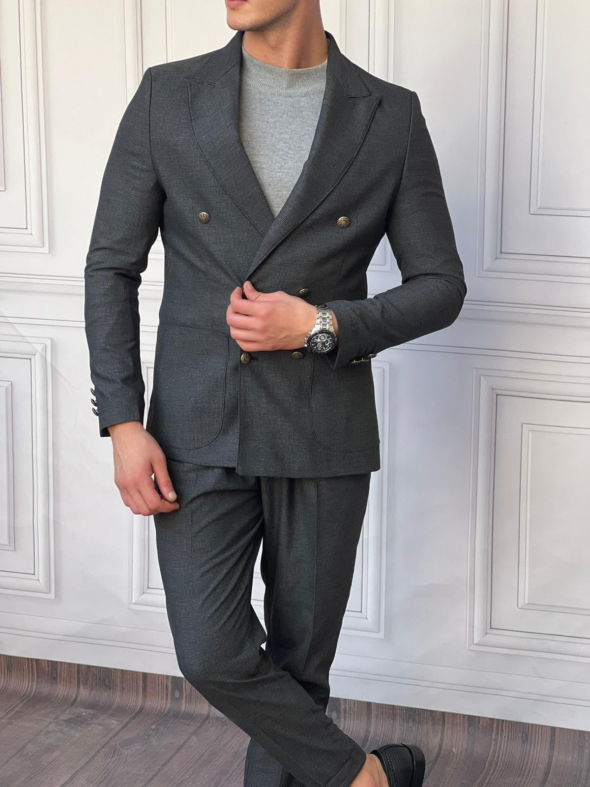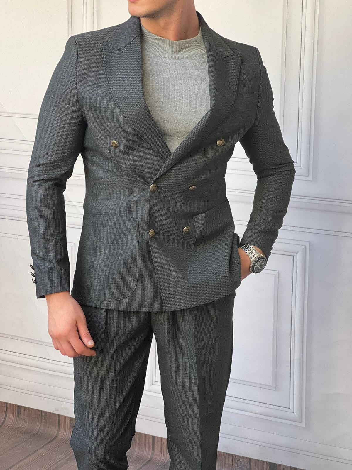 Özel Seri %100 Gofre Kumaş İtalyan Kesim Pileli Modern Fit Takım Elbise