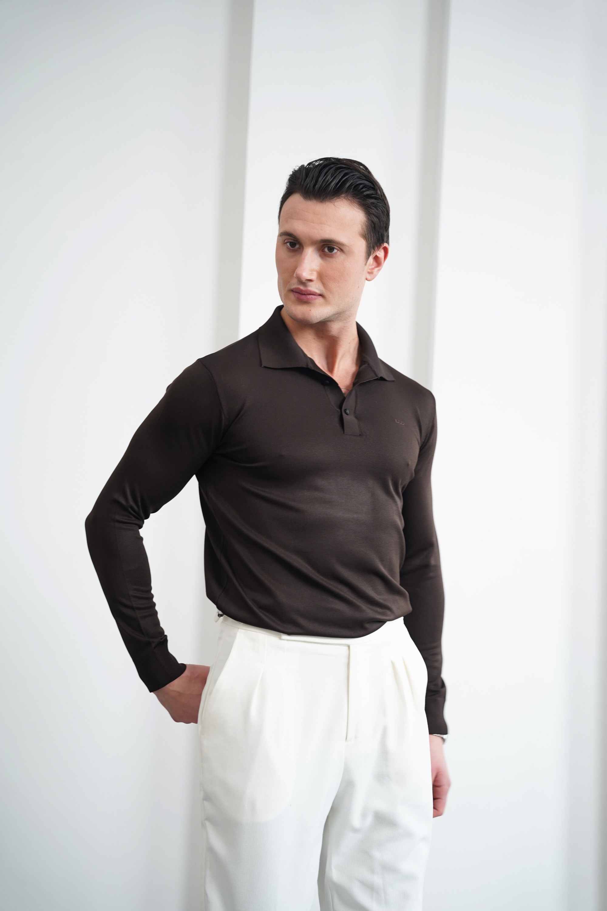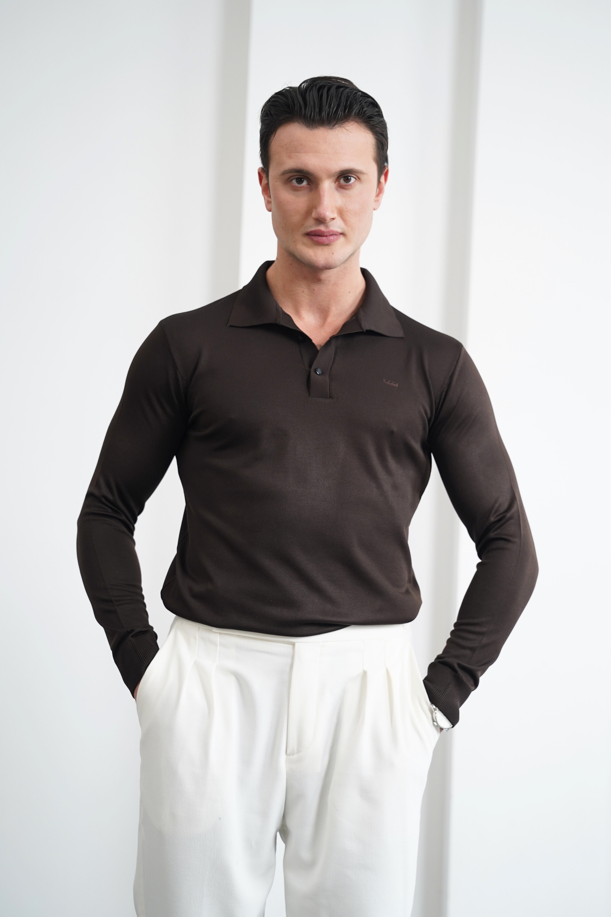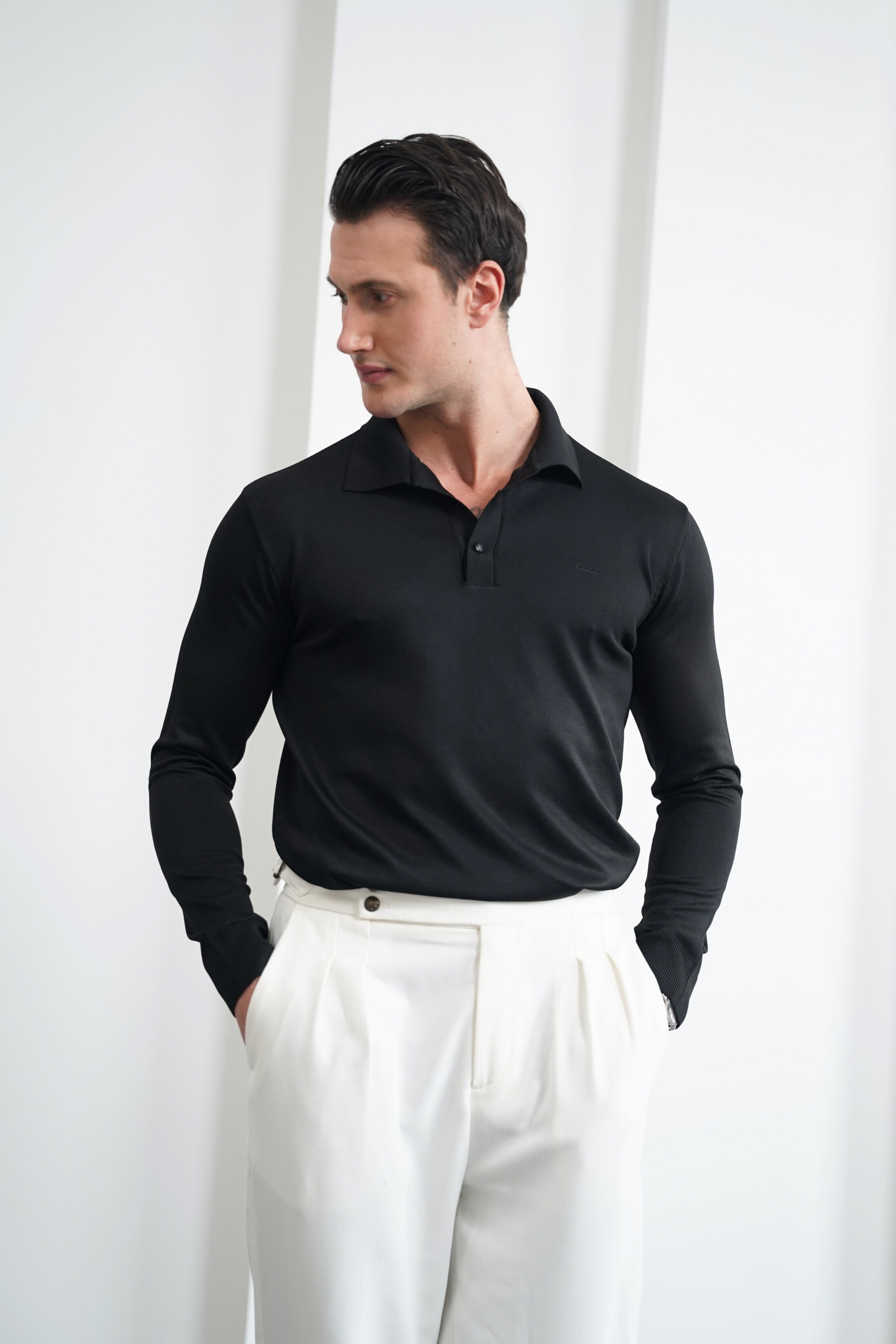 Merserize Kumaş Geniş Yaka Düğmeli Triko