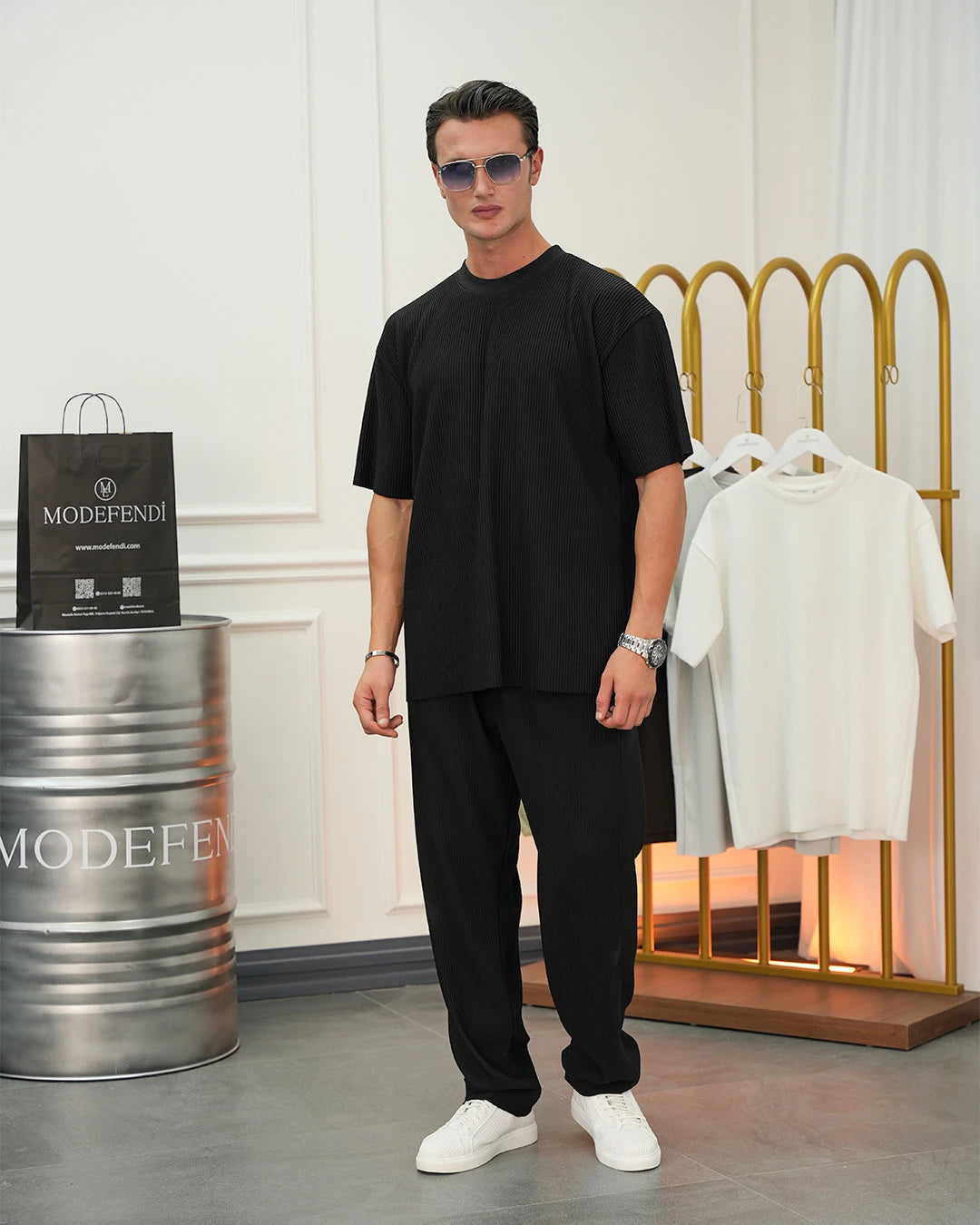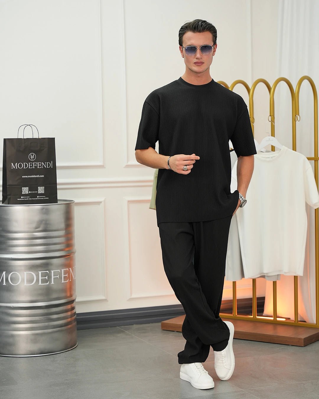 Kalın Fitil Desenli Tshırt'lü Alt Üst Takım
