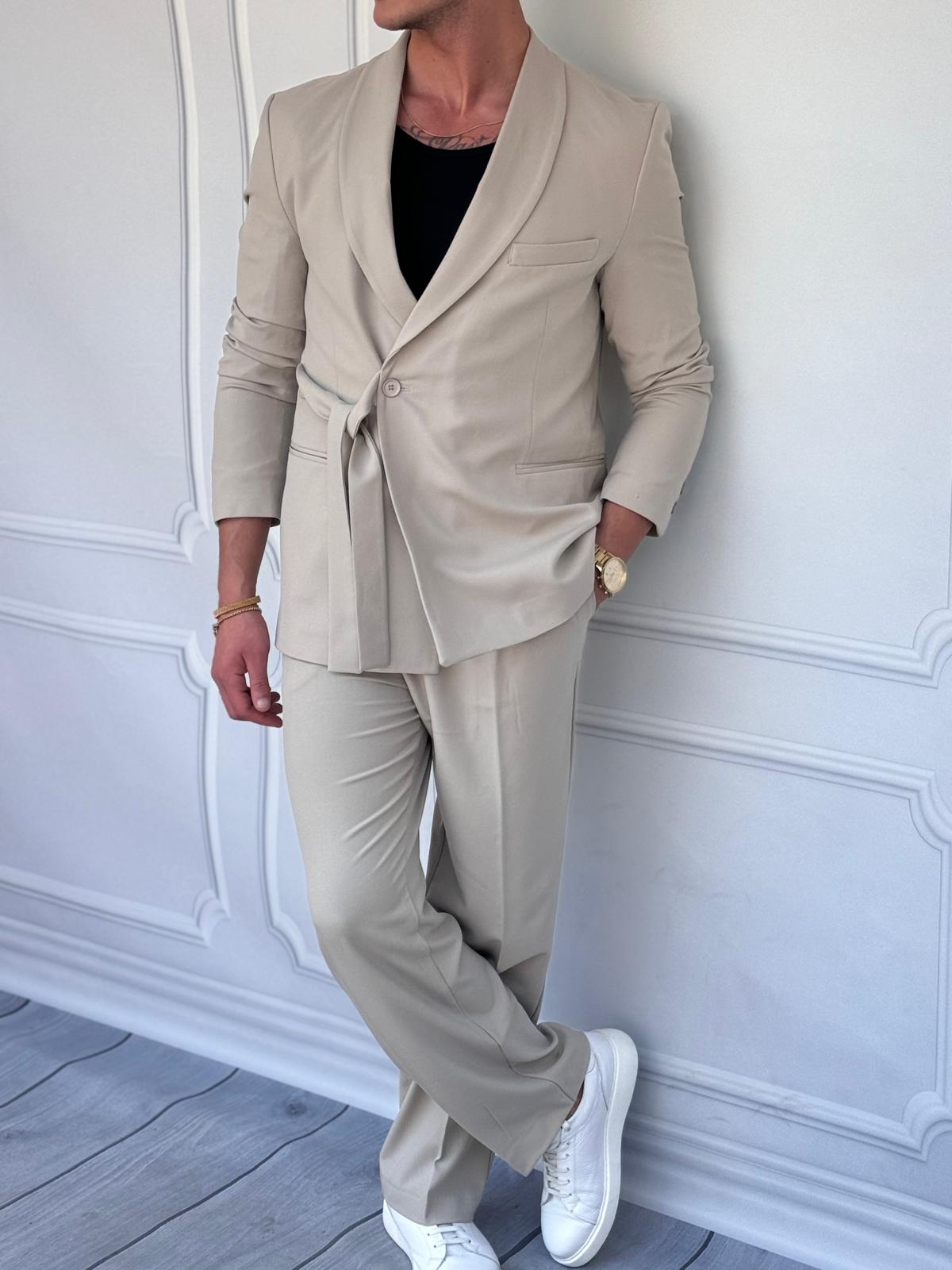 Şal Yaka Kuşak Detaylı Yüksek Kalite Oversıze Bagg Takım Elbise